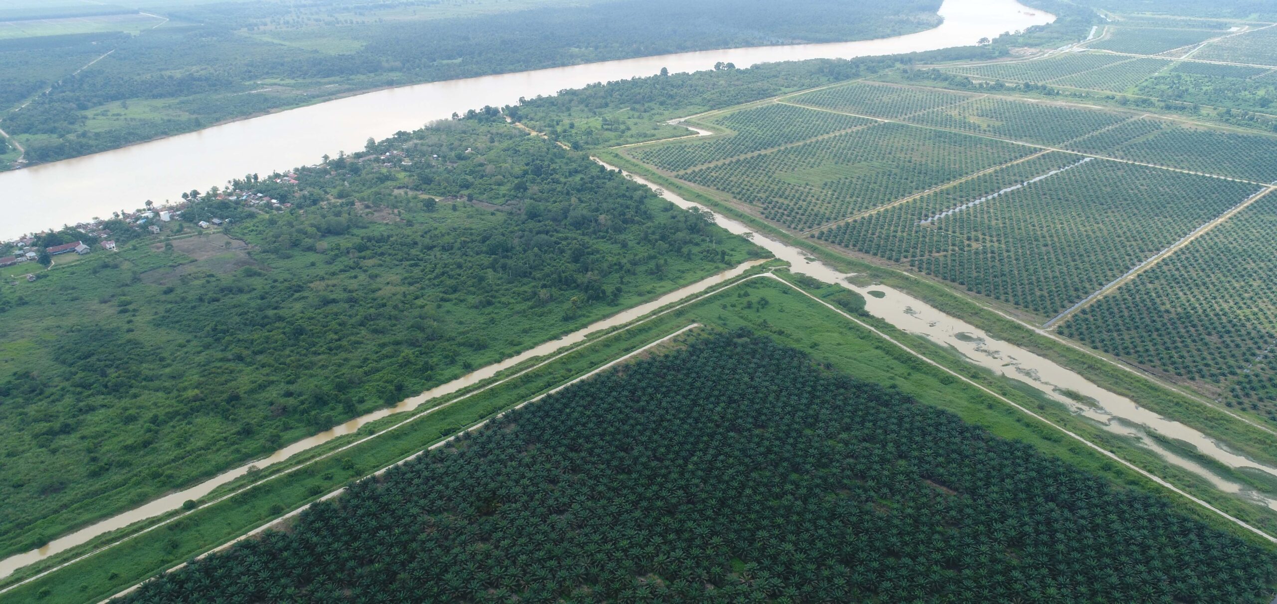 Datuk Rafi’i menceritakan, desa terkepung perusahaan sawit dan tanggul setinggi delapan meter menyisakan sedikit pemukiman lalu selebihnya sungai.