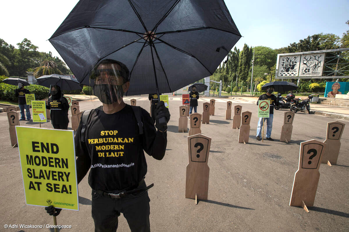 Agar praktik perbudakan modern di atas laut tidak terjadi lagi di masa mendatang, Greenpeace mendesak para pelaku industri Tuna untuk bisa merumuskan kebijakan yang tepat dan dilaksanakan secepat mungkin. Desakan tersebut berlaku juga untuk Pemerintah Indonesia yang berperan sebagai regulator di dalam negeri.