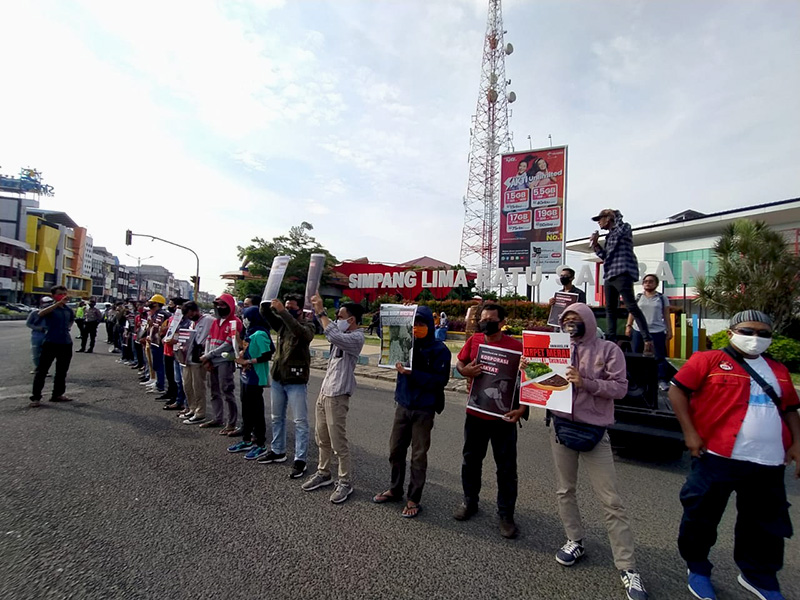 Koalisi Masyarakat Bengkulu menggelar aksi penolakan RUU Omnibus Law Cipta Kerja, di Simpang Lima Kota Bengkulu, Selasa [08/9/2020] sore pukul 15.00 WIB.
