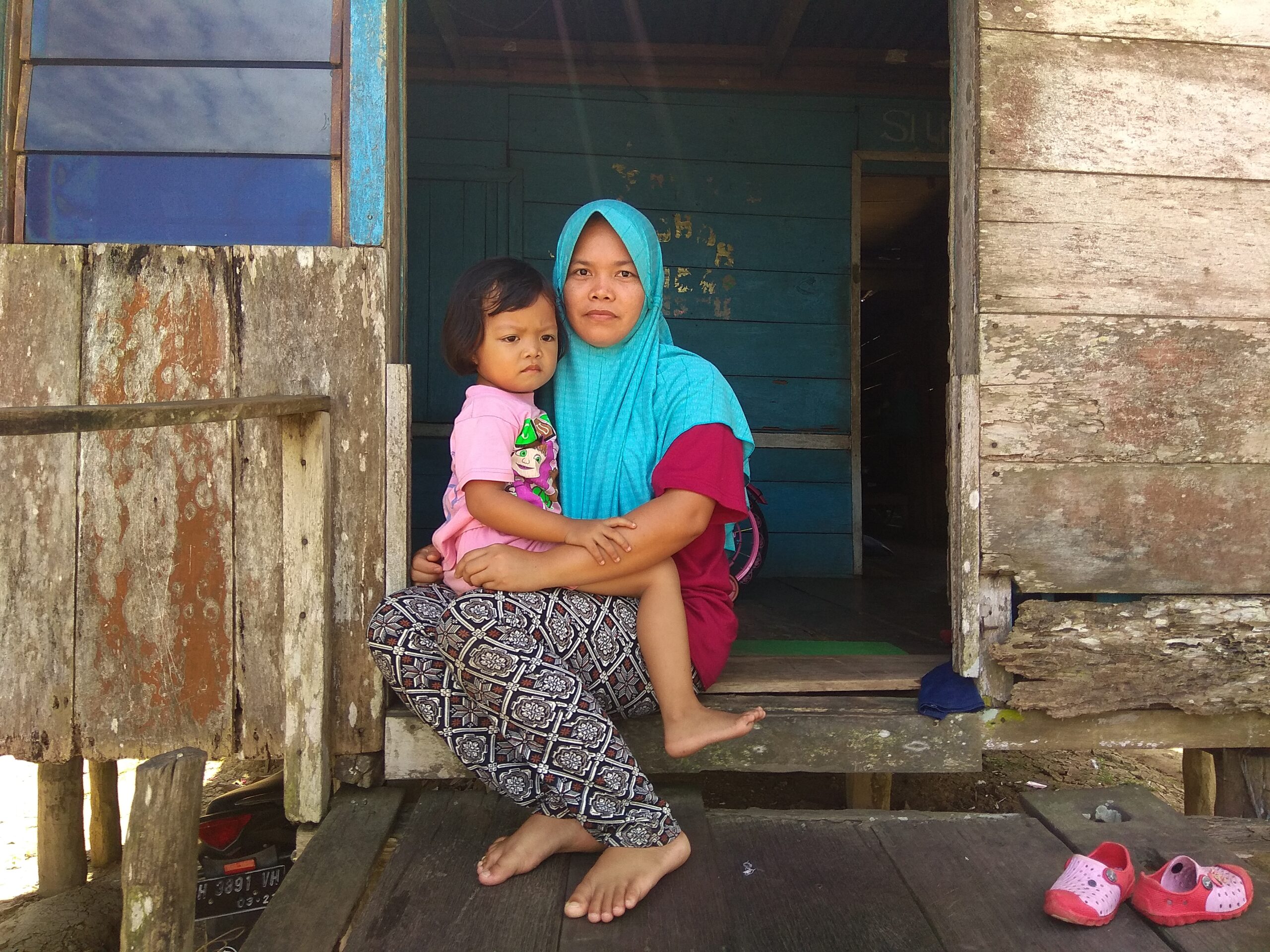 Maryani, warga Desa Muara Jambi, bersama balitanya. Anaknya pernah batuk berbulan-bulan. Foto: Yitno Suprapto/ Mongabay Indonesia