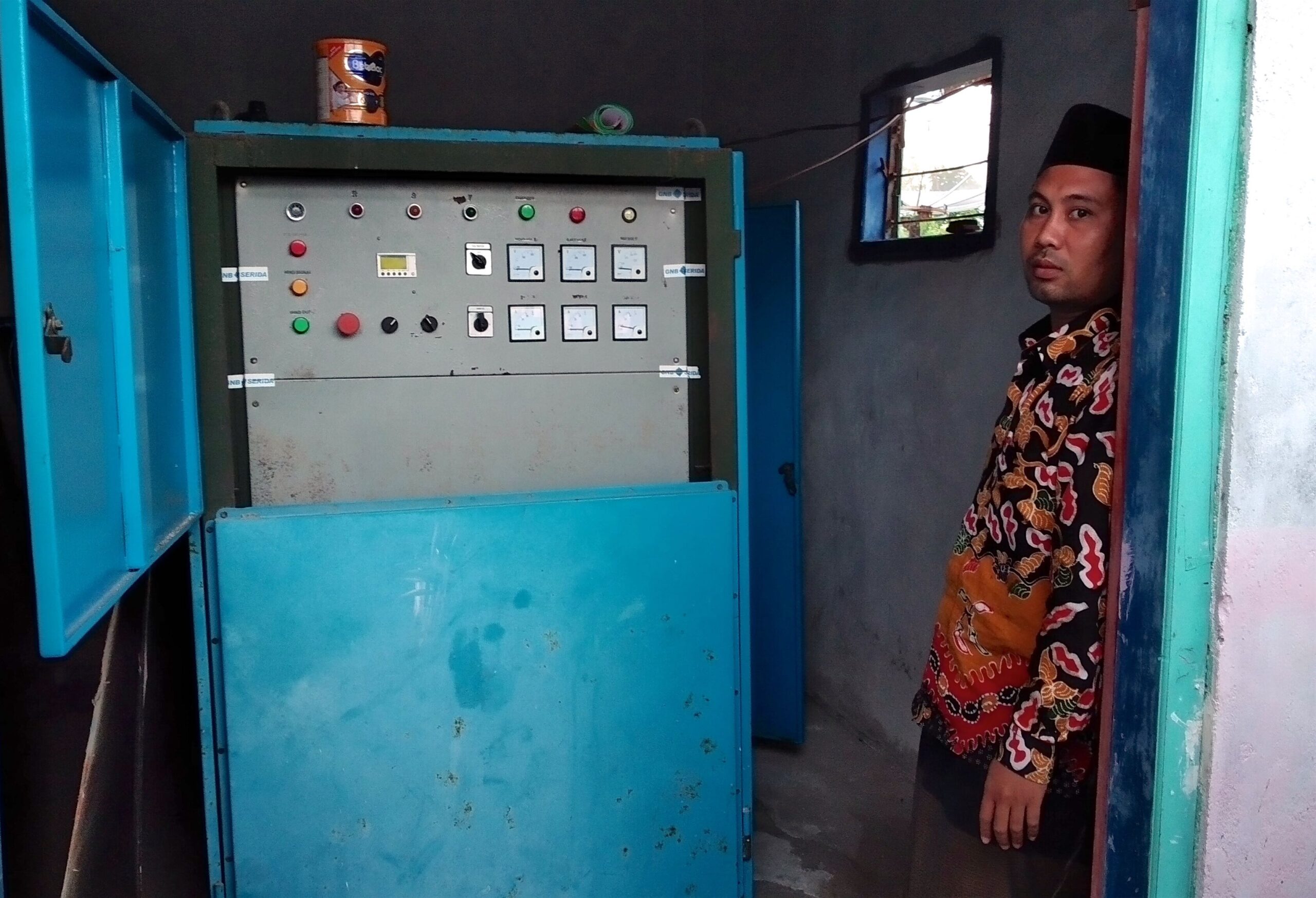 “Biasa 20 aki, cuma sekolah tidak mampu beli hingga pakai empat aki, 12 V dan 60 A,” kata guru fisika itu.