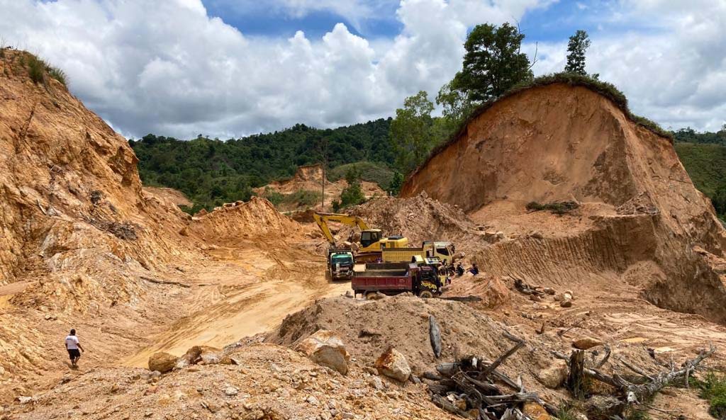 Keterangan foto utama: Bertahun-tahun bukit yang masuk hutan lindung di Kota Sorong ini dikeruk. Akhir September lalu petugas gabungan menyetop operasi tambang galian C ini. Foto: Balai Penegakan Hukum Wilayah Papua-Maluku, KLHK