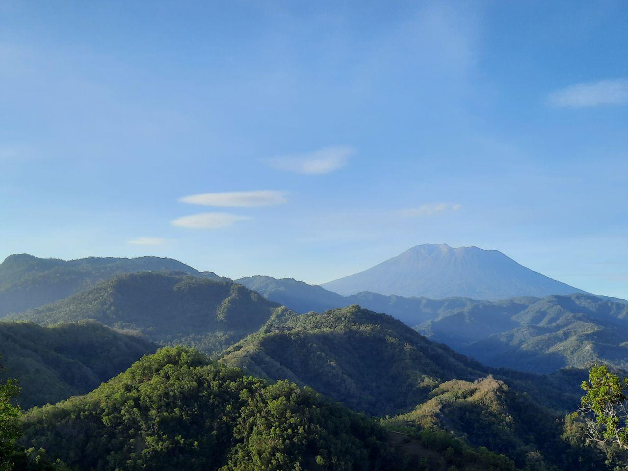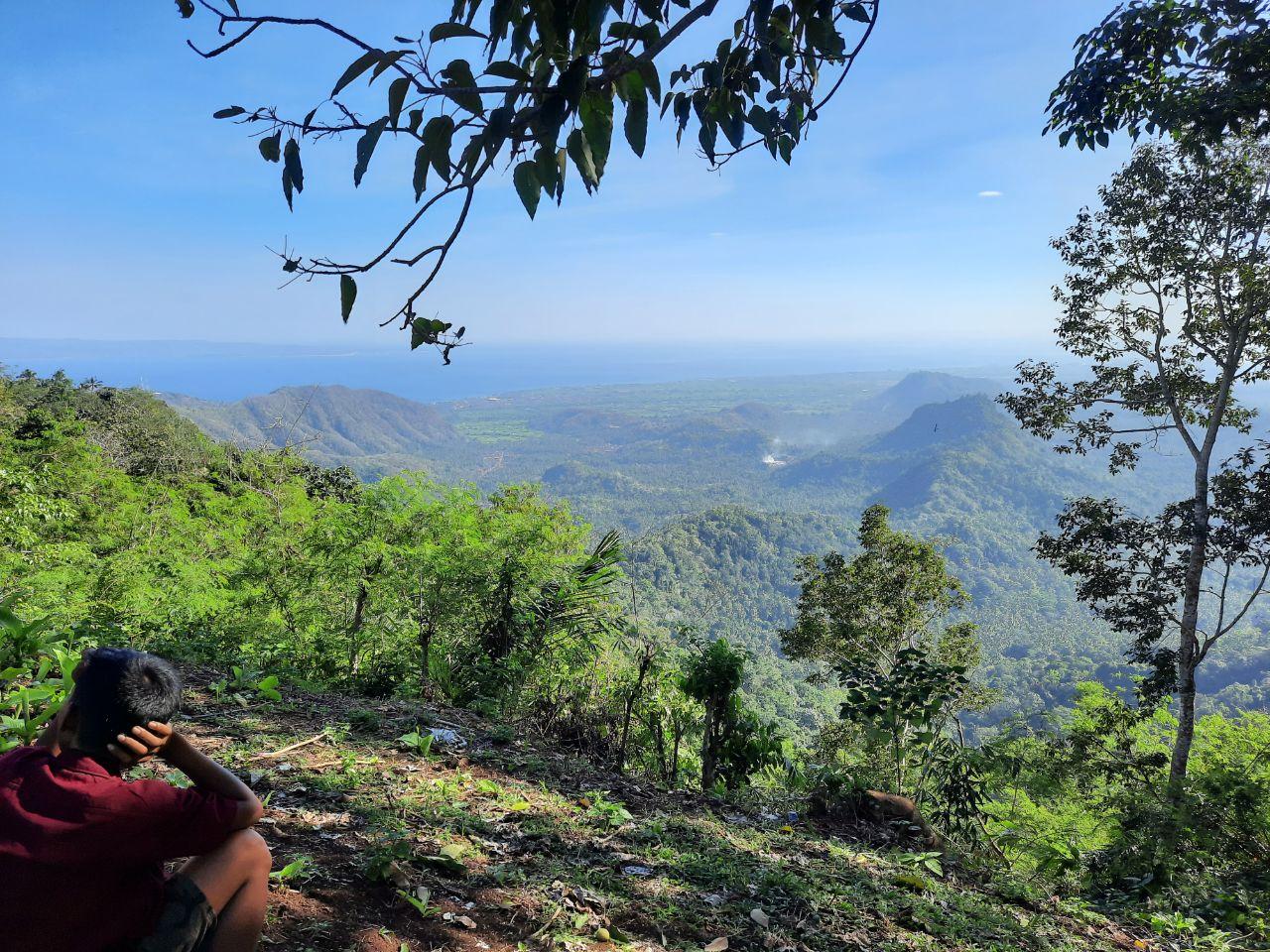 Tiba di puncak bukit, ada rumah penduduk dan lapangan rumput diramaikan belasan anak-anak bermain bola. Latar belakangnya adalah Gunung Agung dengan puncak kawah terlihat jelas. “Di sini warga memantau erupsi,” sahut Osila, warga sekitar.