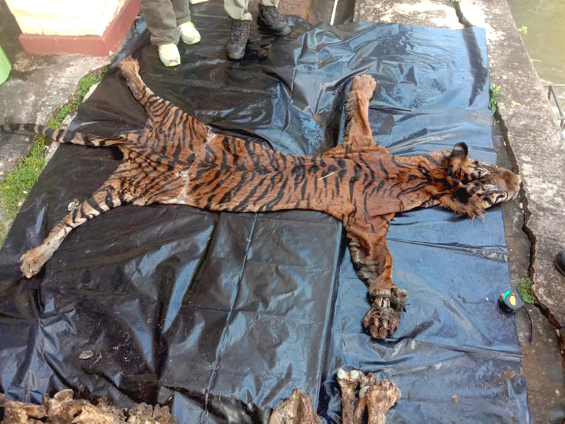 - Dari tangan para pelaku, disita tulang belulang harimau. Bahkan, ada juga kulit harimau yang masih utuh.