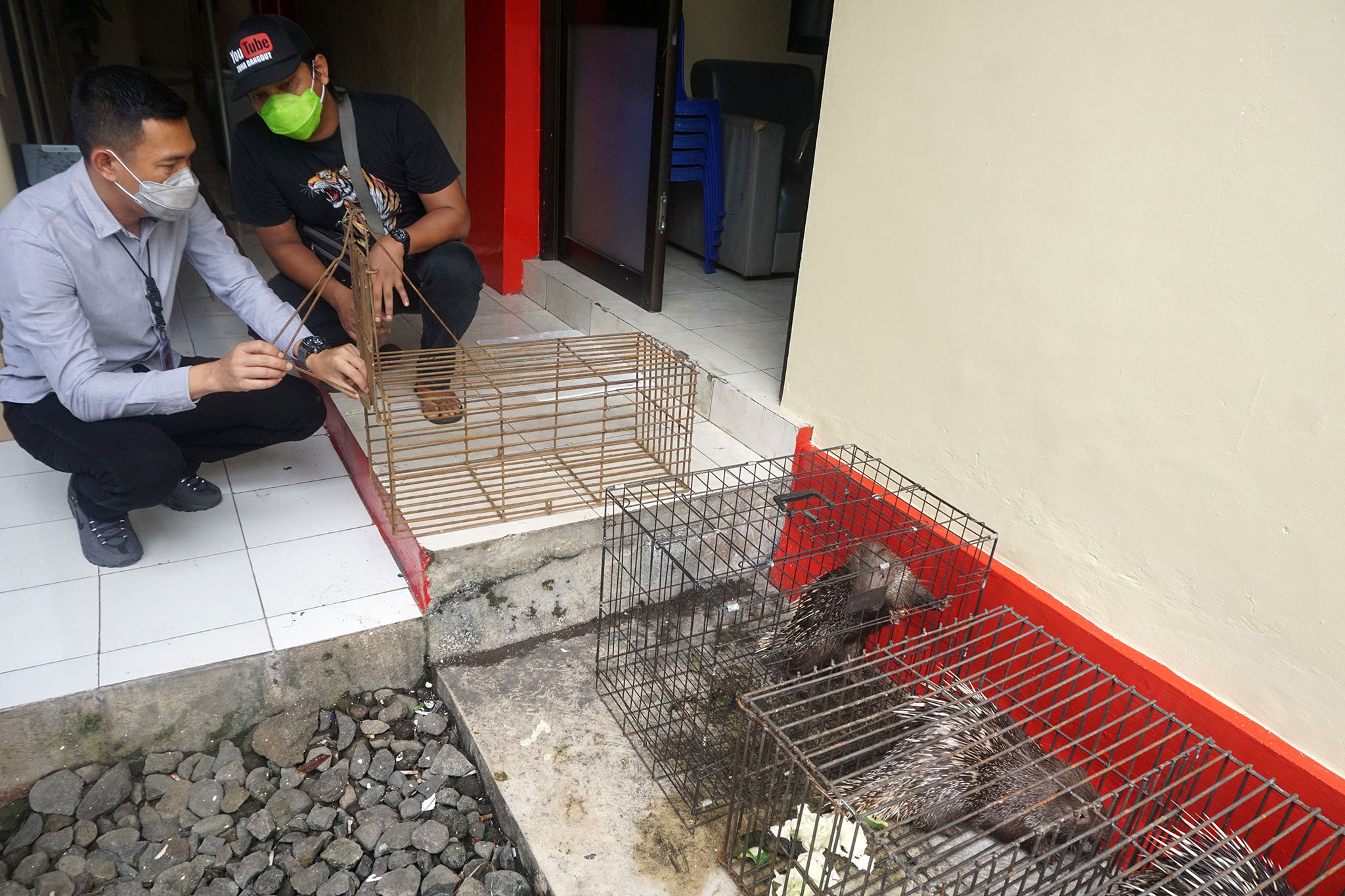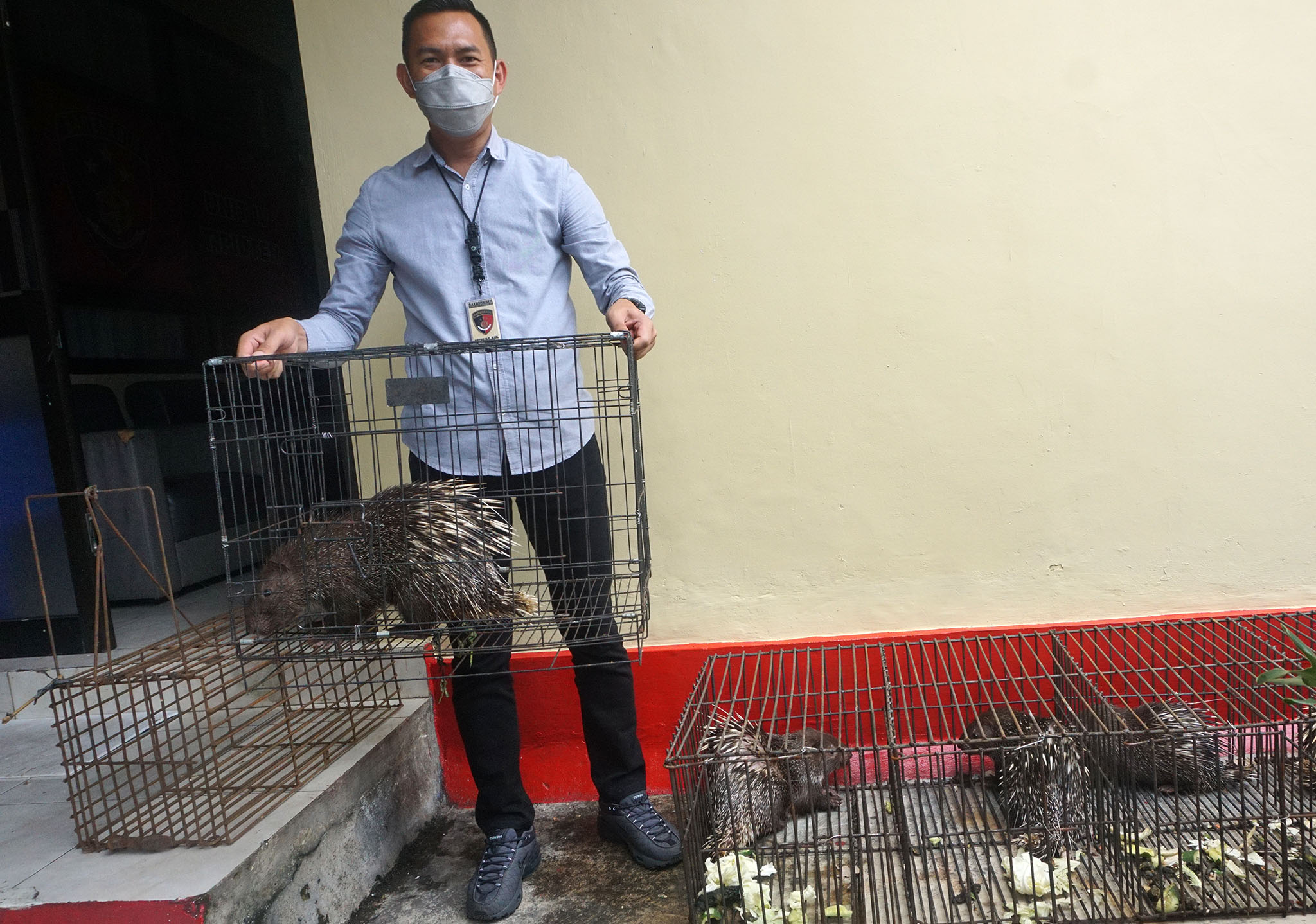 Sejumlah petugas kepolisian dari Satuan Reserse Kriminal (Satreskrim) Polresta Banyumas, Jawa Tengah (Jateng) membawa kandang-kandang besi yang di dalamnya ada Landak Jawa (Hystrix javanica). Selain itu juga ada Trenggiling Jawa (Manis javanica). Dalam barang bukti yang digelar kepolisian, ada juga kandang besi untuk perangkap serta senapan angin untuk memburu dan telepon seluler untuk sarana transaksi. Selain itu, ada delapan landak dan satu trenggiling yang kini tengah dicari karema sudah dijual. Kedua satwa itu dilindungi berdasarkan UU No.5/1990 tentang Konservasi Sumber Daya Alam Hayati dan Ekosistemnya dan Peraturan Menteri LHK No. 106/2018 tentang Jenis Tumbuhan dan Satwa yang Dilindungi.