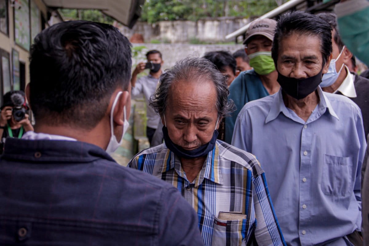 Ketukan palu mengakhiri sidang. Ridwan berdiri dengan cepat dan keluar dari ruangan persidangan. Mata sembab. Puluhan warga lain di luar persidangan menunggu dengan tatapan lesu. “Kenapa putusan seperti itu e?” kata beberapa warga.