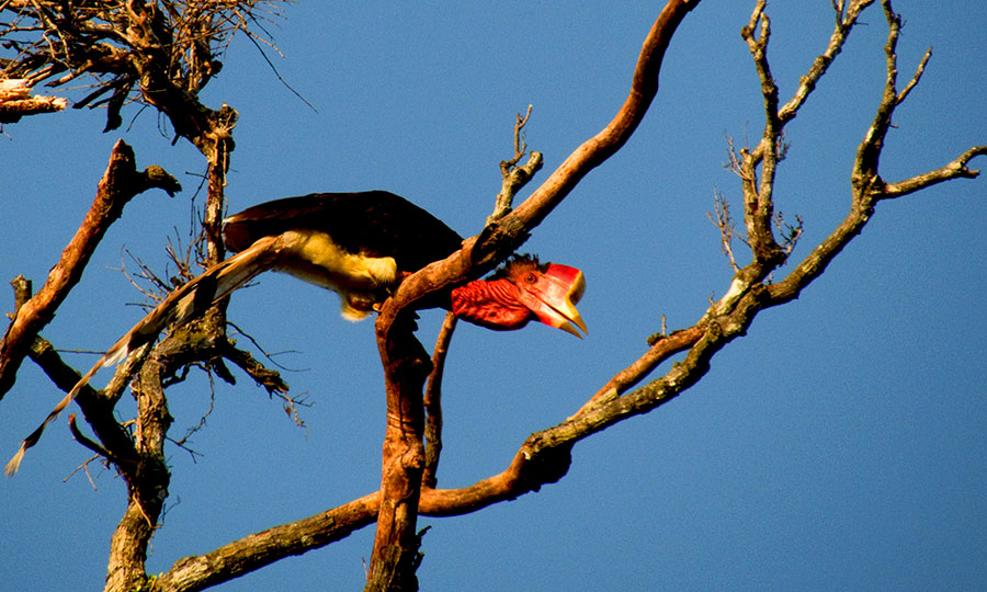Selain itu, burung rangkong gading (Rhinoplax vigil) populasi juga terjun bebas dalam tempo tiga tahun. Rangkong gading diambil tanduk untuk ukiran karena padat dan berkualitas.