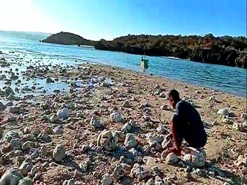 Hasil pemantauan Tim BKKPN Kupang menggunakan drone, terlihat 6 gundukan, dimana 5 gundukan tidak menonjol alias cenderung rata dengan rataan terumbu.