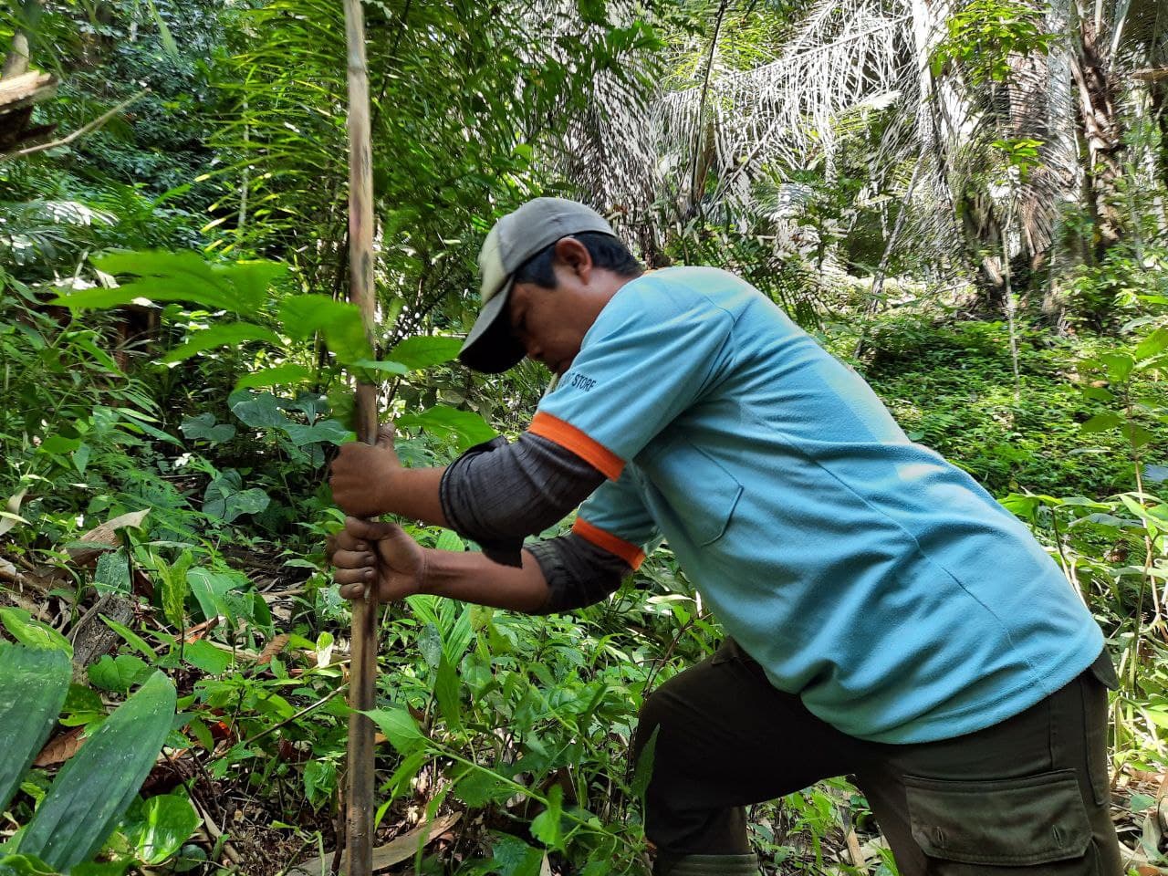 Adapun bibit lama dicek dan dipasangi ajir untuk menandai dan memudahkan perawatan. Mereka juga menghitung tinggi pohon.