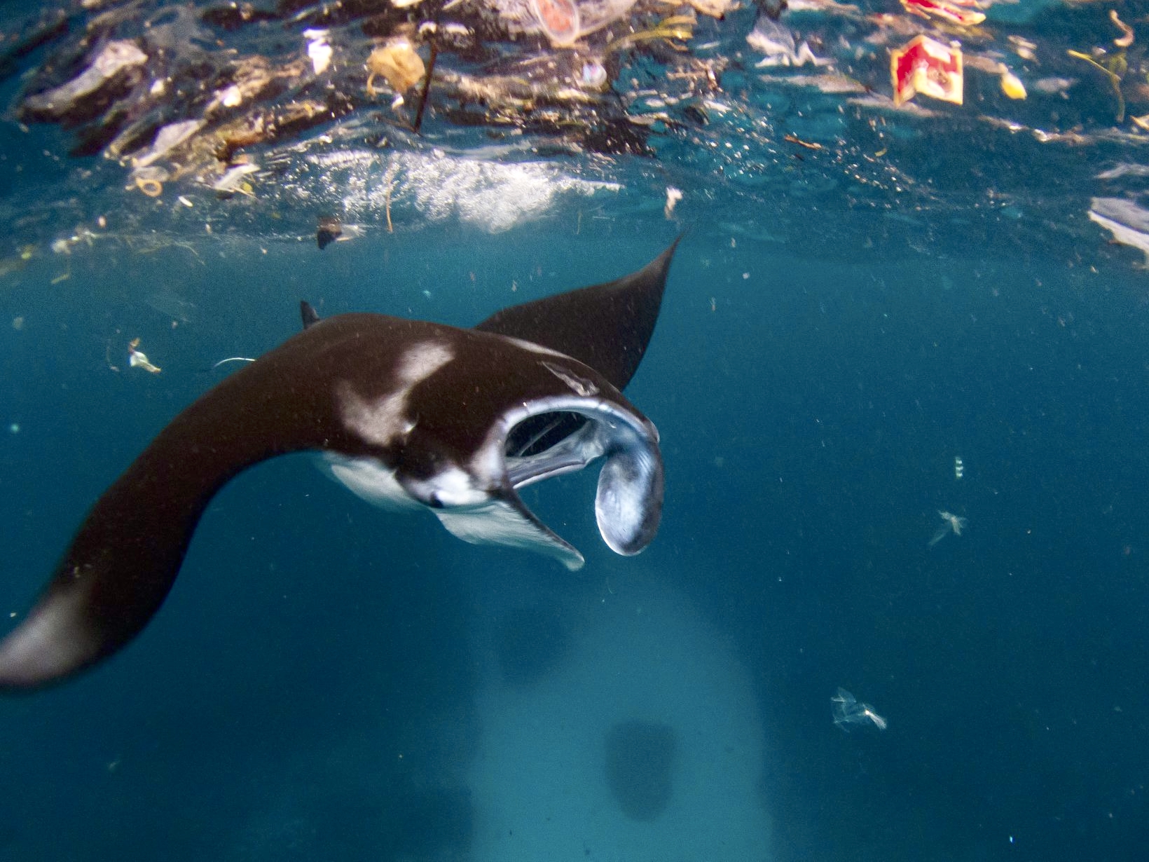 Penelitian sebelumnya yang dipublikasikan pada 2019 menyatakan puing-puing plastik dan mikroplastik ditemukan di semua tempat mencari makan untuk pari manta dan hiu paus di Indonesia, di area Segitiga Terumbu Karang (coral triangle). Megafauna itu tak bisa membedakan atau memilih makanannya, sehingga serpihan plastik dan mikroplastik termakan.