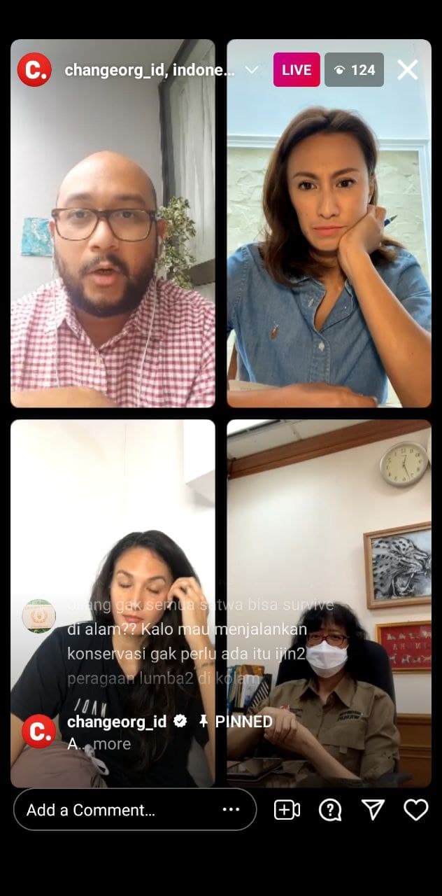 “Bagaimana kalau di luar habitatnya? Dipenuhi welfare-nya, sarana prasara, sudah ada aturan main, standar kolam harus bulat tidak kotak,” tukas Indra, pejabat perempuan di KLHK ini. Menurutnya lembaga konservasi punya kesempatan melakukan peragaan tanpa mengabaikan welfare.