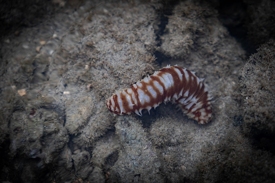 Pengamatan Mongabay Indonesia yang bermalam di sekitar Pantai Kenuse, Dusun Tuing, pada Minggu [11/7/2021], saat air laut mulai surut, di hamparan terumbu karang ini dengan mudah ditemukan biota laut eksotik. Sebut saja jenis teripang hitam [Holothuria edulis], teripang [Holothuria hilla], bulu babi [Diadema setosum], beragam jenis udang, dan kepiting pasir.