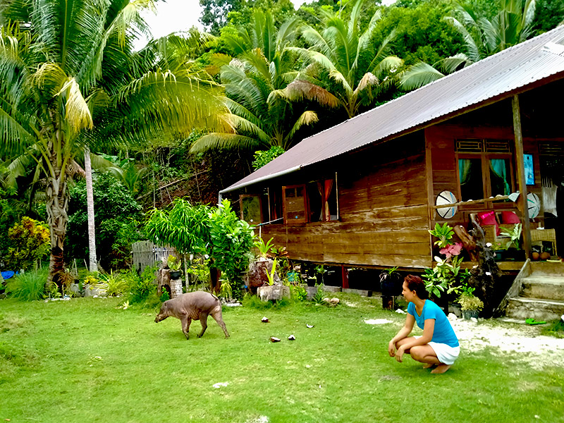 “Coco memang begitu kalau melihat orang asing. Dia akan lari ke hutan,” Ating tersenyum ketika saya kecewa melihat babirusa lari ke hutan.