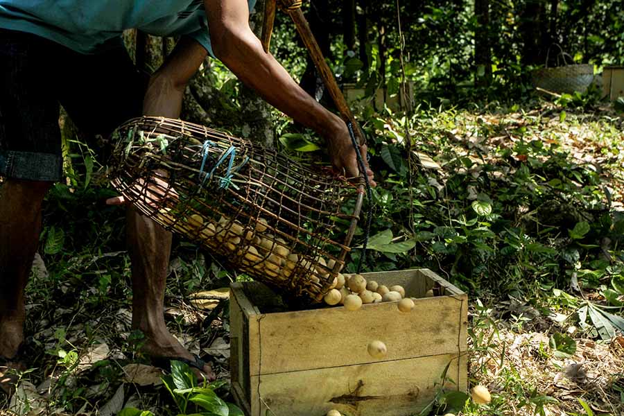 Juned, petani duku komering asal Sirah Pulau Padang, Ogan Komering Ilir, Sumatera Selatan, tak pernah sehari pun absen merawat kebunnya. Dia membersihkan semak yang tumbuh di antara batang pohon dan membuang ranting-ranting lapuk.