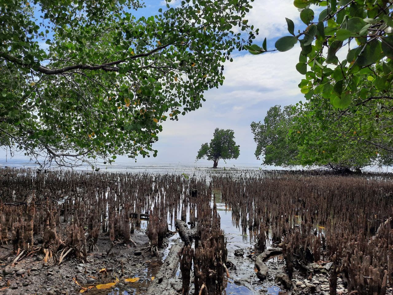 Bibit Rhizophora yang dipilih untuk menambah tegakan mangrove karena kesulitan membibitkan jenis mangrove endemik dan jenis ini dinilai bisa tumbuh di sana. Bibit ini sudah tertanam dan perlu dirawat untuk bisa tumbuh besar.
