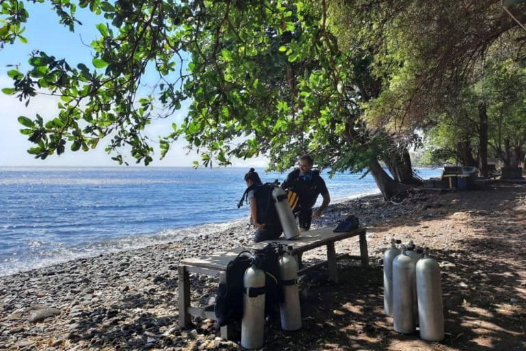 Mereka sigap mengambil handuk untuk bantalan di kepala saat mengangkut tangki. Para porter perempuan bisa mengangkut 2 tangki sekaligus, satu dijunjung di kepala, satu lagi ditaruh di bahu. Bukan hal mudah jika tak terlatih. Satu tangki kosong beratnya sekitar 12 kg, jika terisi sekitar 15 kg. Belum lagi alat selam lainnya seperti BCD dan pemberatnya.