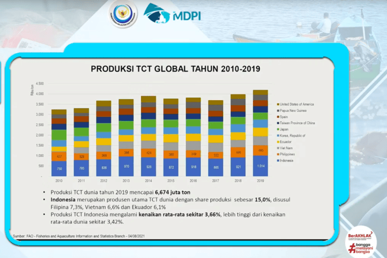 Produksi Indonesia naik rata-rata 3,6% lebih tinggi dari rerata global 3,4%. Total produksi TCT dunia pada 2019 sebesar 6,6 juta ton. Produksi tuna terbesar dari Indonesia adalah yellow fin tuna. Permintaan tuna dunia 2020 senilai 14,4 milyar USD.