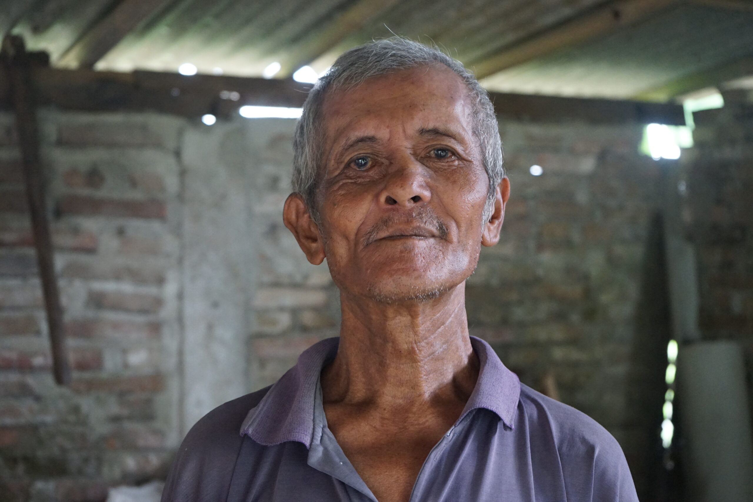 Sabar [65 tahun], setiap hari mengawasi hutan nyamplung di dekat pesisir Pantai Jetis. Terkadang ia menanam cabe, palawija, kacang-kacangan dan lainnya di lahan hutan. “Saya ini relawan penjaga hutan, bekerja hampir 12 tahun tanpa upah,“ ujarnya.