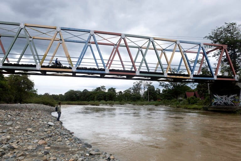 Di bagian sungai yang diseberangi Haryanto, jarak antara dasar sungai dengan kayu yang dipakai sebagai jembatan tak sampai satu meter. Kondisi ini memudahkan siapapun melintas. Manusia ataupun satwa, seperti gajah dengan mudah menyeberang ke Desa Jadi Mulya.
