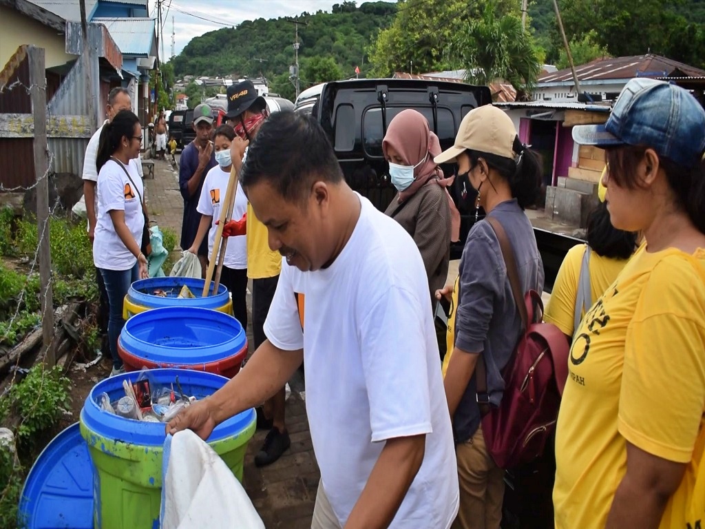 “Kami melakukan aksi bersih-bersih di dua Rukun Tetangga (RT) yang ada di Kelurahan Ekasapta dalam rangka menyongsong HPSN (Hari Peduli Sampah Nasional),” kata Thomas Bala, Asisten Koordinator Mandiri Program Kotaku, Kabupaten Flores Timur.