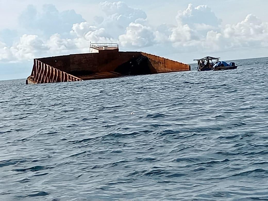 “Pada Jumat (18/3/2022) sore, saya bersama empat teman kembali ke lokasi dengan naik perahu dan menemukan Kapal Ponton Woodman 37 telah karam setengah sementara muatannya sudah tidak ada. Saya melihat sendiri bahwa ada banyak bekas batubara di atas kapal dan tumpahan batubara di perairan sekitarnya,” lanjutnya.