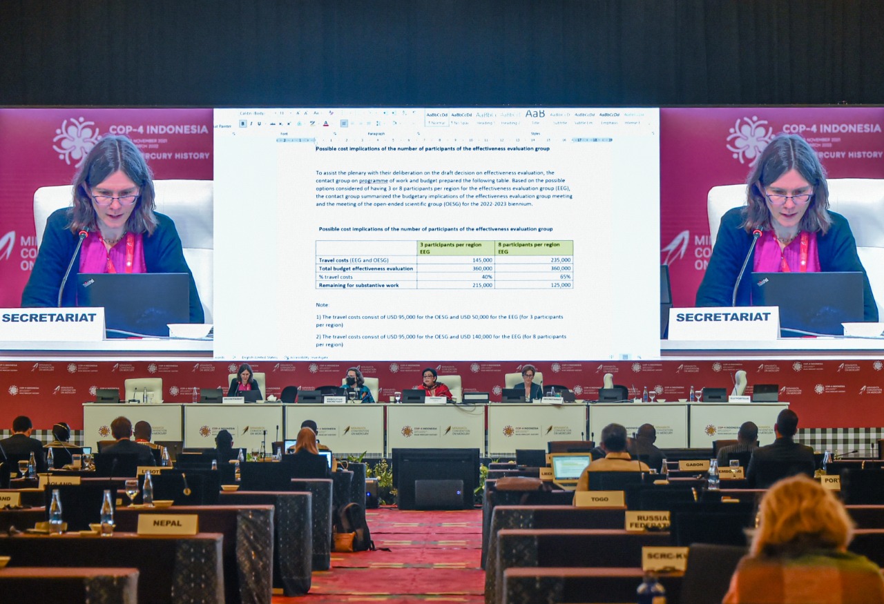 Direktur Jenderal Pengelolaan Sampah, Limbah dan B3 KLHK, Rosa Vivien Ratnawati yang juga selaku Presiden COP-4 Konvensi Minamata secara resmi menutup pertemuan COP-4 segmen kedua (COP-4.2) Konvensi Minamata di Bali pada Sabtu (26/03/2022), dini hari waktu setempat. Rapat Pleno yang harusnya dijadwalkan selesai petang hari sebelumnya, terpaksa diperpanjang hingga dini hari.