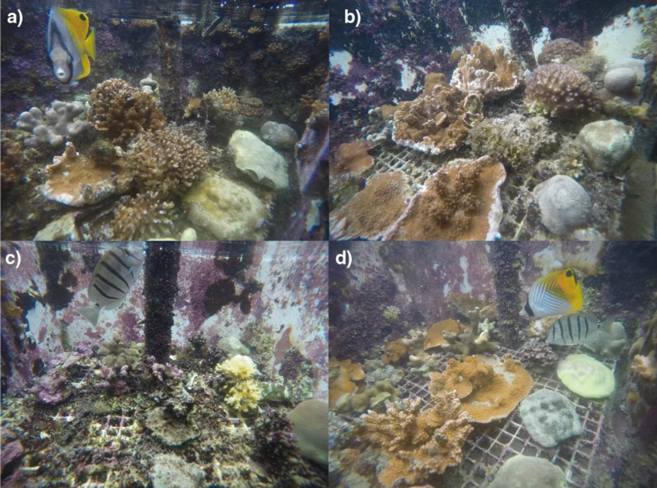 Ketiga sampel itu ditempatkan dalam tangki dengan empat kondisi lingkungan berbeda. Tangki pertama dengan kondisi laut saat ini; tangki kedua dengan kondisi pengasaman laut (-0,2 unit pH); tangki ketiga kondisi pemanasan laut (+2 derajat Celcius); dan tangki keempat adalah gabungan kondisi antara pemanasan dan pengasaman.