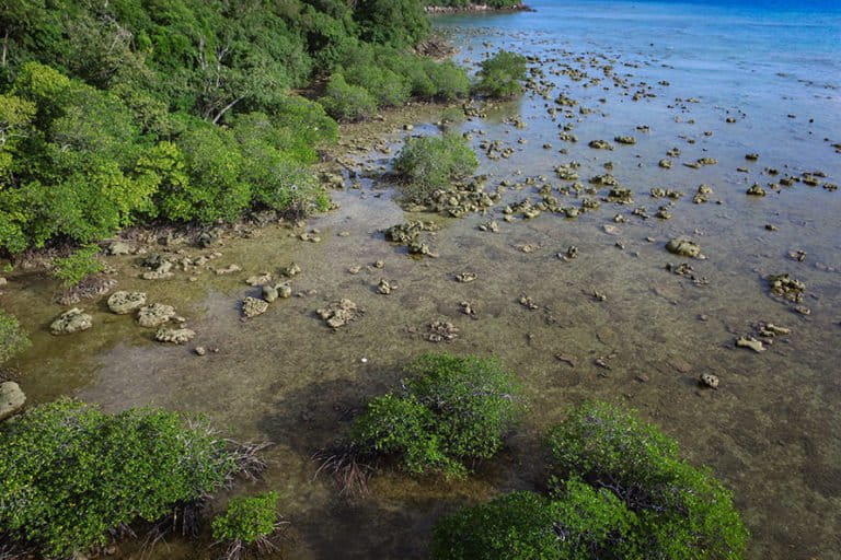 Degradasi ekosistem mangrove akan menyebabkan peningkatan potensi yang berdampak negatif pada kesehatan terumbu karang di dalam kawasan [Dharmawan dan Pramudji, 2014]. Sebab, ekosistem mangrove kaya akan sedimen yang terendapkan di lantai hutan.