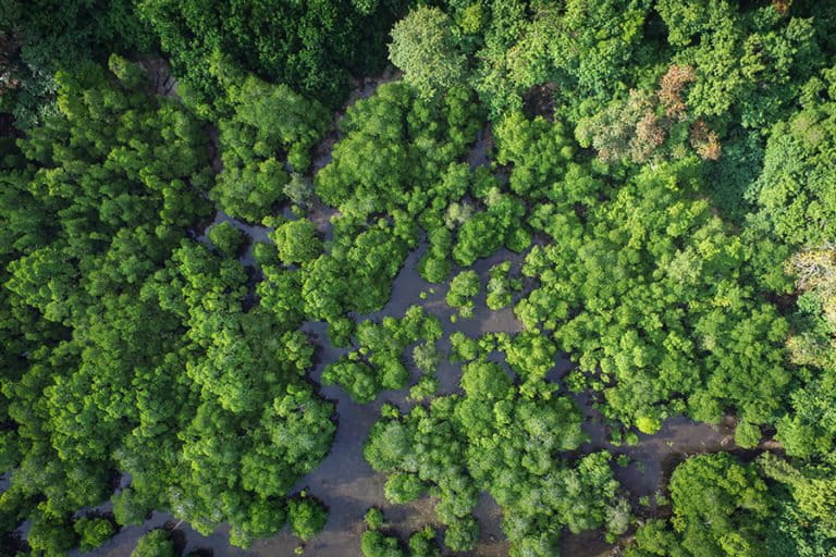 Selain melindungi daerah pesisir dari abrasi, tanaman mangrove mampu menyerap emisi yang terlepas dari lautan dan udara. Dengan cara penyerapan karbon untuk proses fotosintesis, lalu hasil dari fotosisntesis menghasilkan oksigen, yang dilepaskan ke atmosfer dan terlarut ke perairan. Tingginya kandungan oksigen di perairan mencirikan tingginya kelimpahan organisme fitoplankton yang membuat perairan menjadi subur.