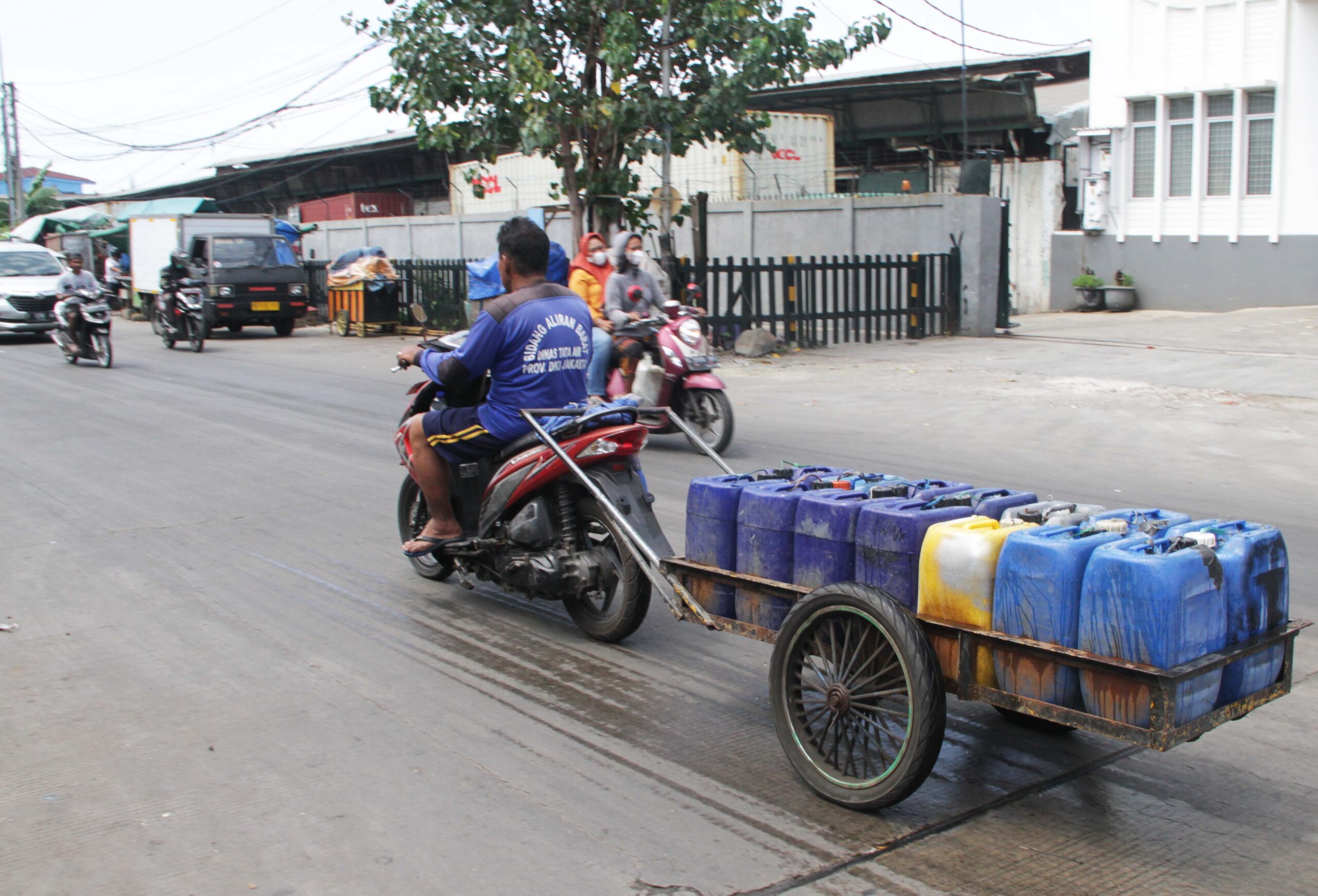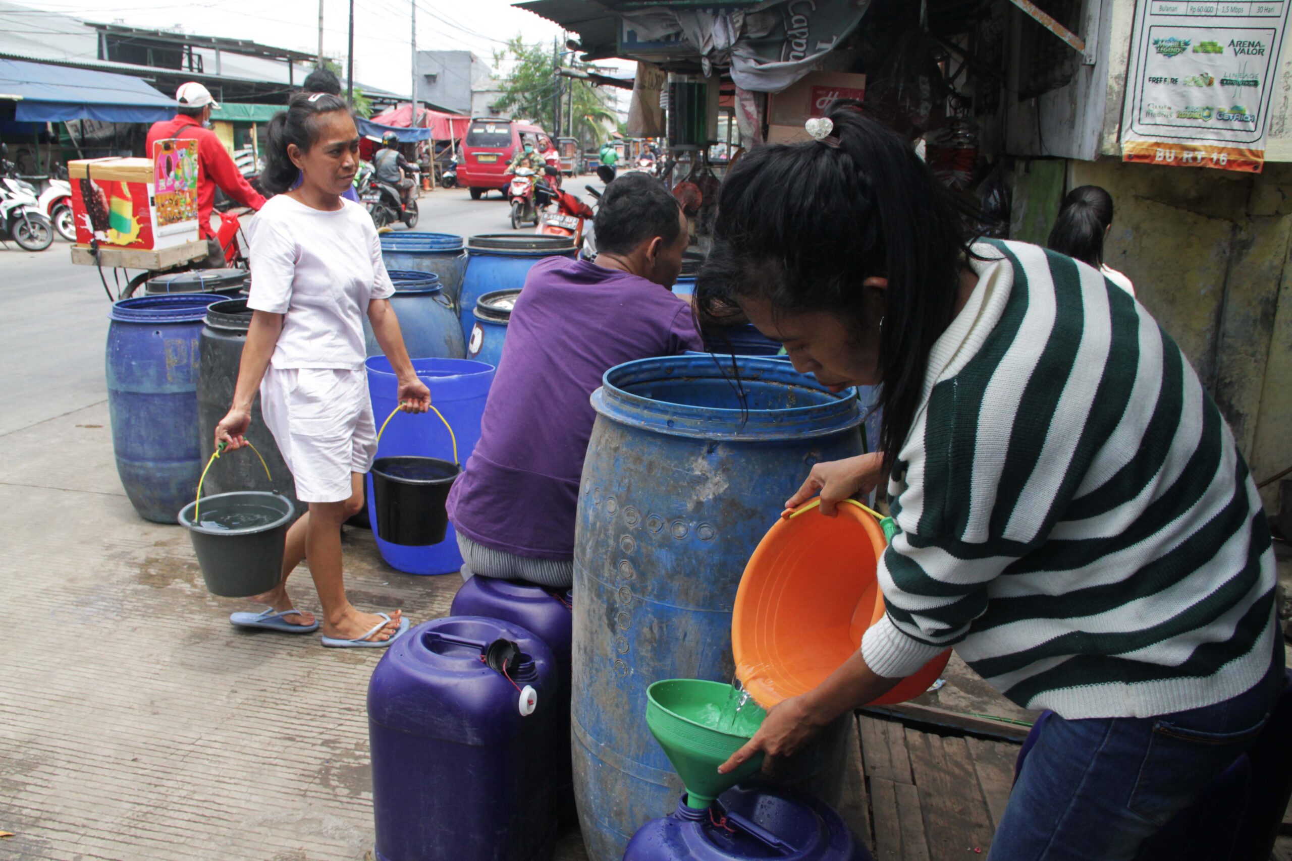 Biasanya, sebelum truk tangki datang ia terlebih dulu menaruh jerigen di pinggir jalan raya saat pagi hari. Begitu air datang ia pun turut mengantri bersama warga lainnya. Seringnya mereka berebutan, tidak jarang juga berujung cekcok.