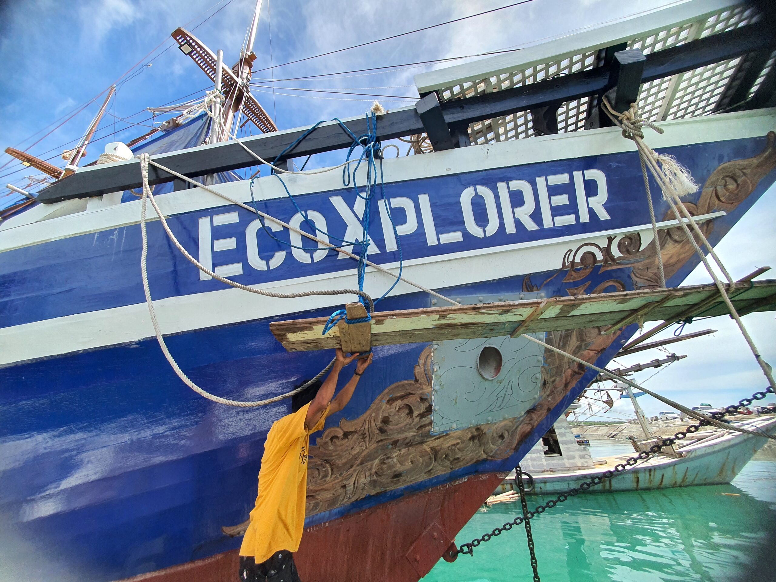 Kapal pinisi EcoXplorer ini sendiri memiliki ukuran yang cukup besar yaitu 130 Gross Tonnage (GT), yang bisa memuat puluhan orang, berbahan kayu bitti yang memang diperuntukkan untuk perahu pinisi. Butuh setahun untuk menuntaskannya menggunakan jasa belasan tukang.