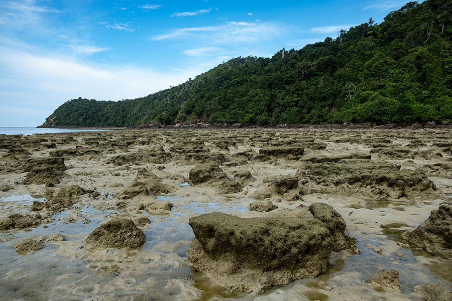 Selain itu, ditemukan juga karang-karang mati yang timbul di tepi pantai. Sepertinya, karang-karang itu sudah lama mati dan terkubur dalam tanah [pasir], sehingga pada saat terjadinya erosi pantai patches ini terbuka kembali.