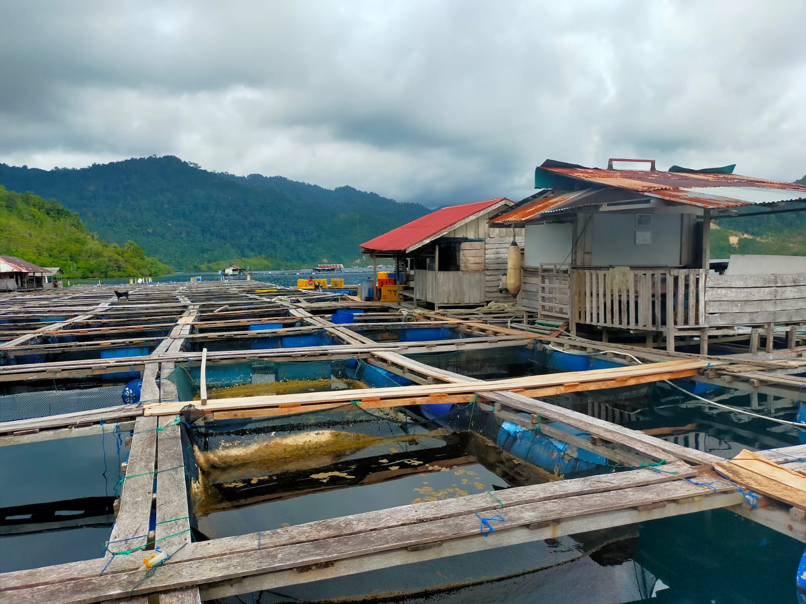 KJA ini dilengkapi sebuah rumah kayu kecil sebagai rumah tunggu yang terhubung dengan jalan titian kecil yang terbuat dari papan. Untuk penerangan mereka menggunakan panel tenaga surya.