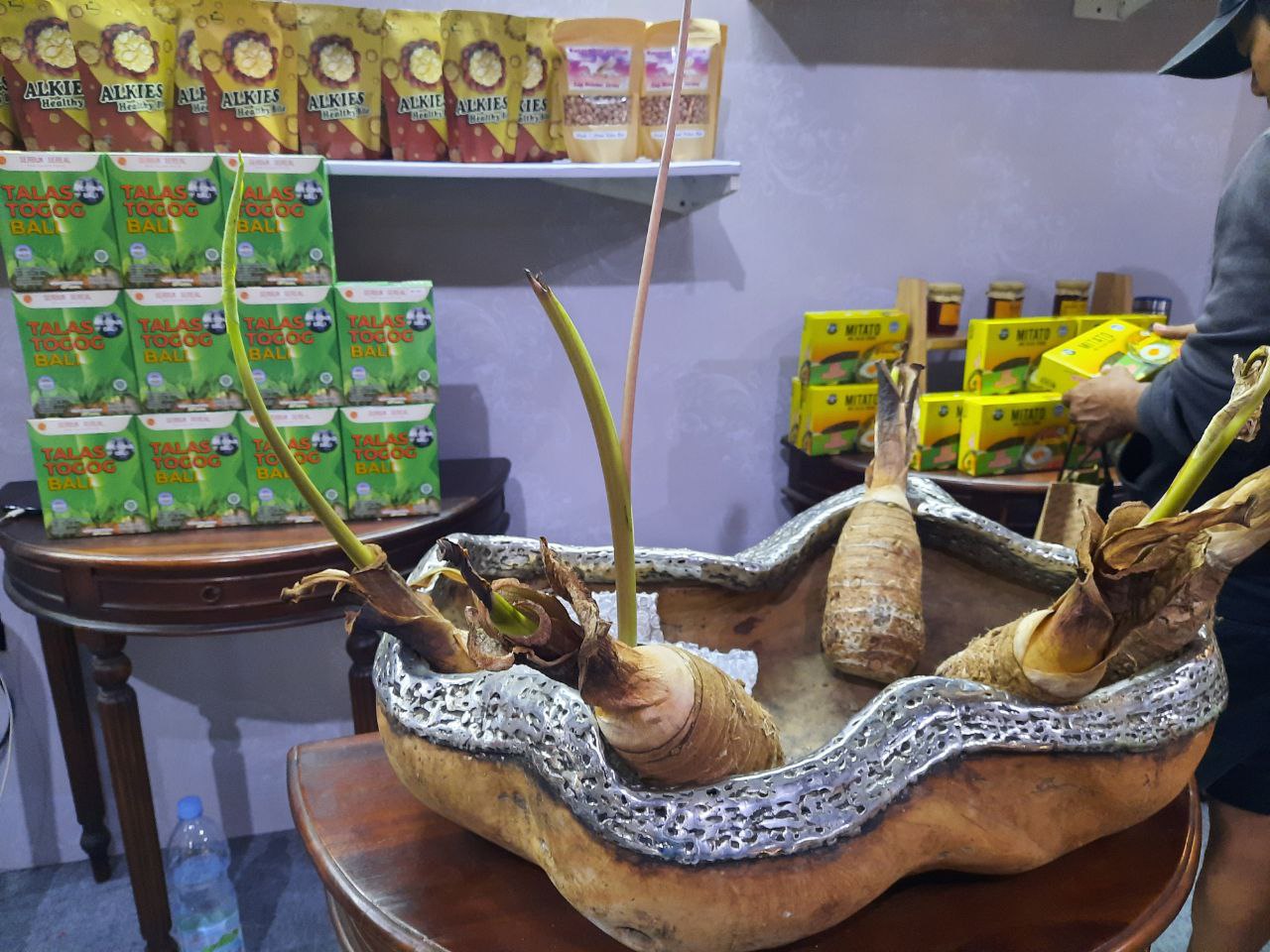 Talas togog ini terlihat berukuran lengan orang dewasa. Dalam bahasa Bali, talas disebut keladi. Talas jenis ini terlihat makin dinilai istimewa. Ada sejumlah kebun percontohan yang menjual bibit talas ini dengan aneka variannya. Misalnya talas togog kuning dan ungu. “Semua olahan ini bisa dinikmati di warung saya, sereal, mie goreng, dan makanan sehat lain,” kata Ni Made Sukerthi, menyebut warungnya di Jalan Gatsu Barat 421, Denpasar.