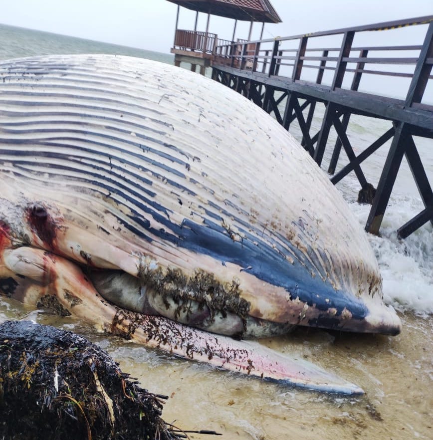 “Saya hitung galur tenggorokannya, ada sekitar 50, dan galurnya berhenti sebelum umbilicus. Jadi kemungkinan paus Sei. Walau paus Bryde’s juga punya galur 50-an (40-70),” kata Liza.