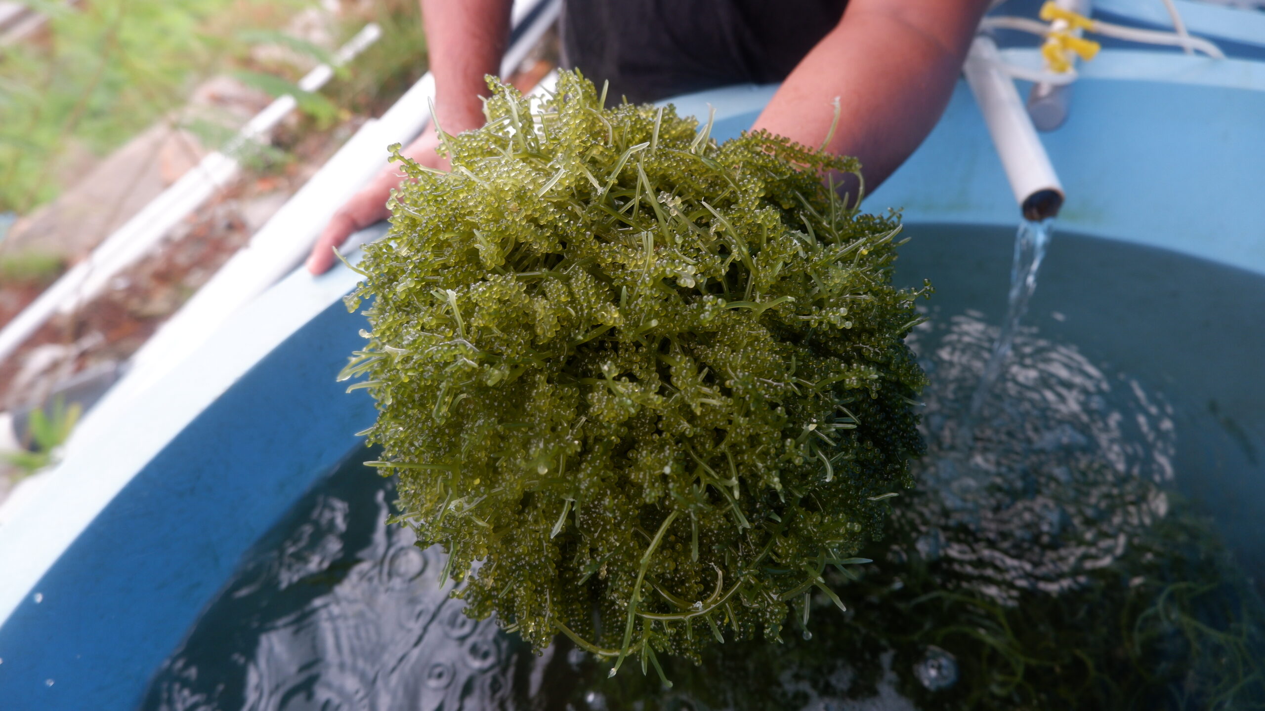 Tahun 2011 merupakan tahun pertama pengujian budidaya Caulerpa sp. dengan melakukan tahapan uji coba dengan dua orang pembudidaya. Pembudidaya berhasil memproduksi 1.600 kg dari 160 kg bibit anggur laut dalam tiga bulan pemeliharaan pada lahan dua hektar. Bahkan anggur laut juga bisa dipanen setiap hari.