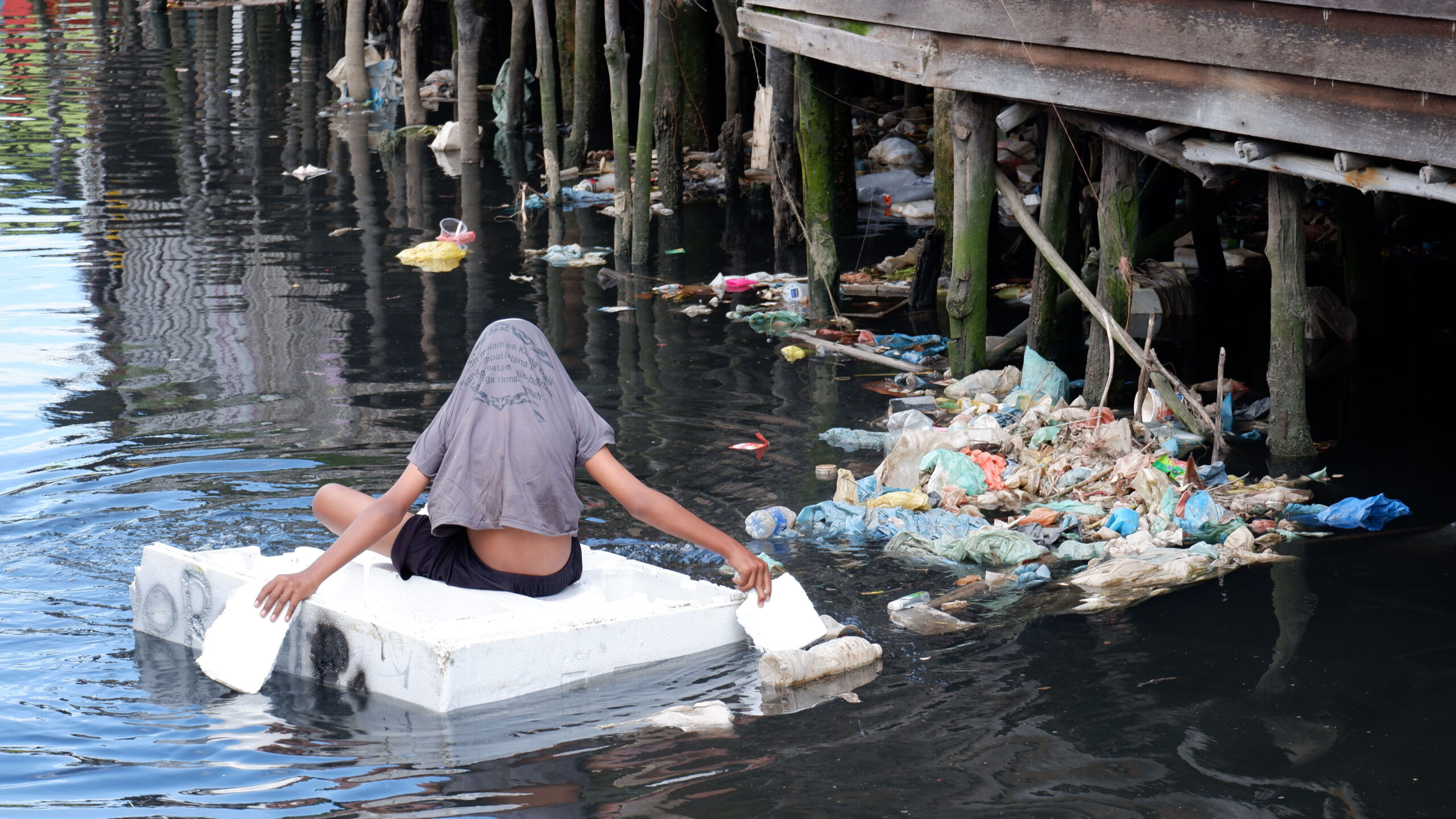 Bau busuk menyengat masuk ke rongga hidung ketika memasuki pesisir kampung terapung Agas, Kelurahan Tanjung Uma, Lubuk Baja, Kota Batam, Provinsi Kepulauan Riau. Sampah plastik berserakan di bawah pelantar rumah-rumah panggung warga. Ada juga yang ikut bersama air limbah berwarna hitam pekat menuju laut.