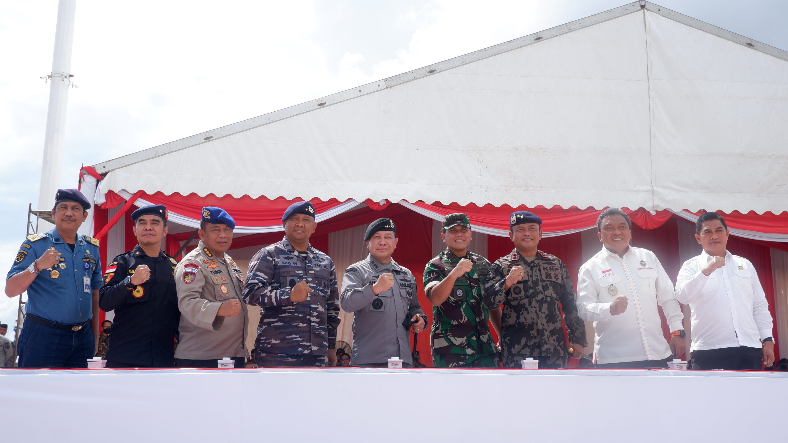 “Alhamdulillah, pagi ini peresmian operasi bersama. Dasar kegiatan ini yaitu peraturan pemerintah nomor 13 tahun 2022, tentang Penyelenggaraan Keselamatan dan Keamanan Hukum di Perairan Indonesia,” ujar Kepala Badan Keamanan Laut (Bakamla) Republik Indonesia (RI) Laksdya TNI Dr. Aan Kurnia usai membuka upacara.