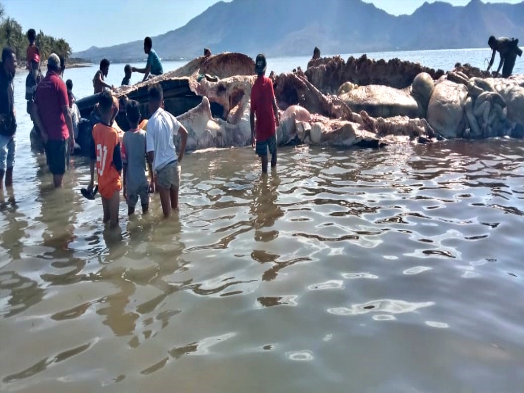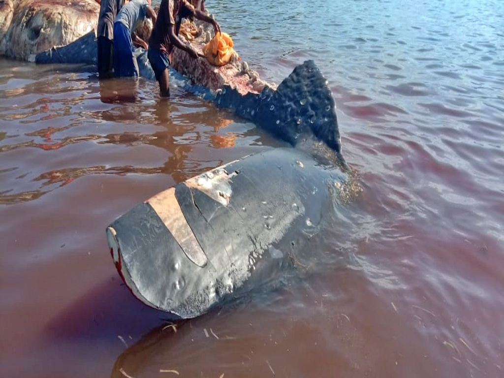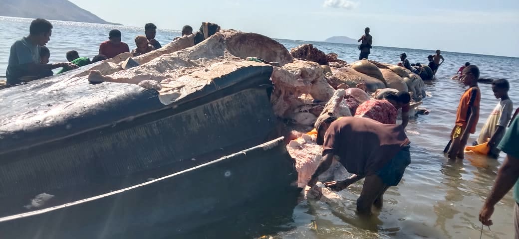 “Namun setibanya di lokasi terdamparnya paus, ternyata masyarakat sekitar pesisir sudah memotong dan mengambil daging paus yang telah mati tersebut,” terangnya.
