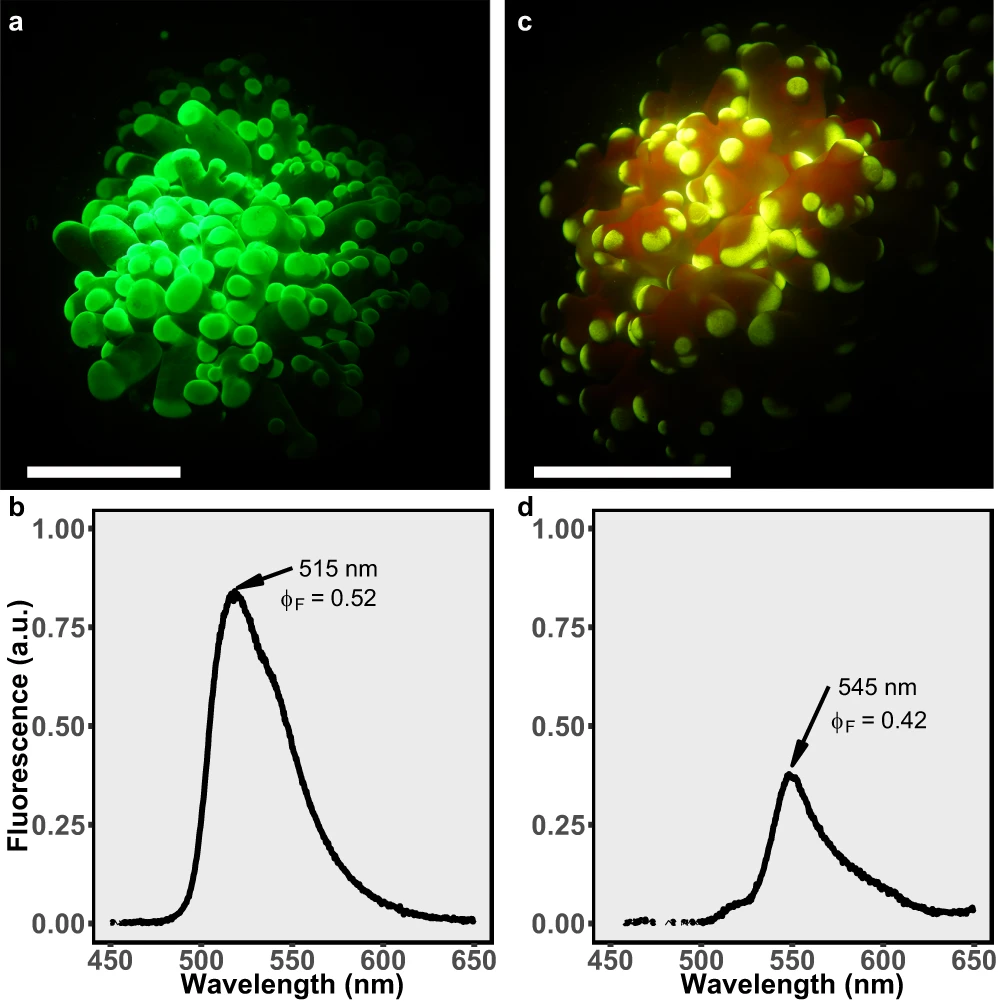 - Hasil uji coba di teluk Eilat, sebuah teluk di Laut Merah, menunjukkan bahwa karang yang menghasilkan fluoresensi berwarna hijau mampu meningkatkan pemangsaan 25 persen lebih tinggi daripada karang yang menunjukkan fluoresensi kuning.