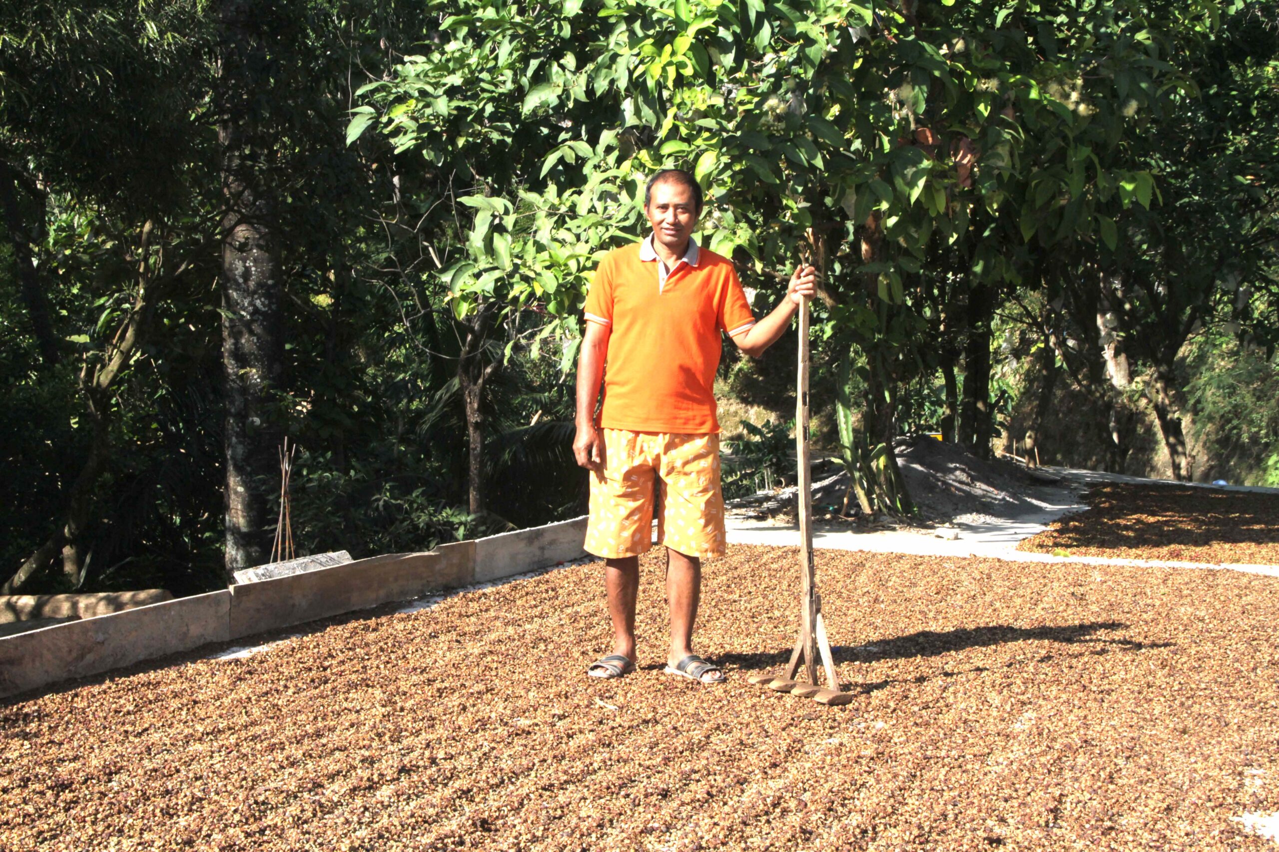 Sebagai ukuran, di halaman rumahnya seluas 100 meter persegi yang digunakan untuk menjemur itu penuh dengan biji kopi. Padahal sebelumnya hanya setengah.