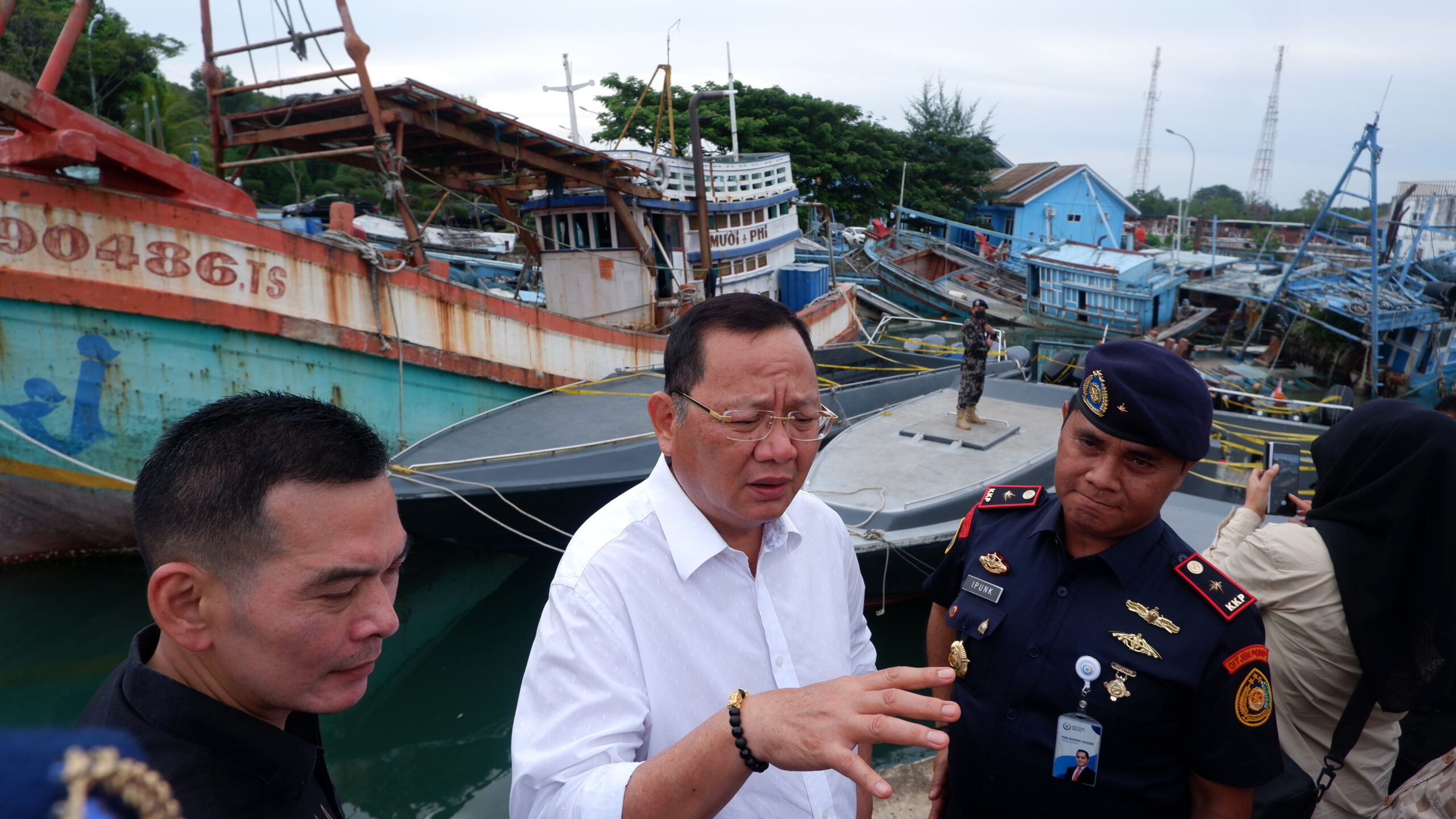 Sudin sempat menanyakan status kapal-kapal tersebut, apalagi kapal kayu ikan asing Vietnam berukuran besar terlihat lapuk bahkan sebagian mulai hancur. Kapal ini belum masuk masa lelang karena proses hukum masih berlangsung cukup lama. “Ini statusnya bagaimana, kalau mau dilelang harganya sudah jauh turun ini,” kata Sudin.