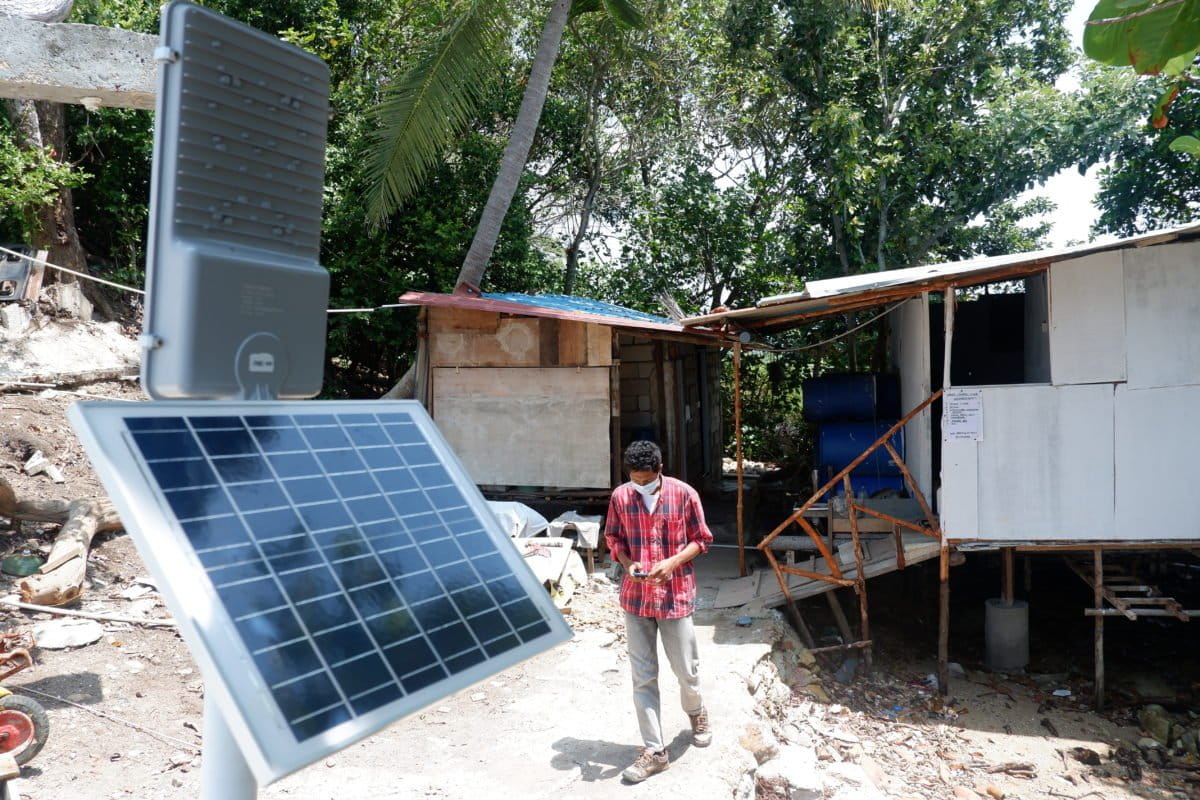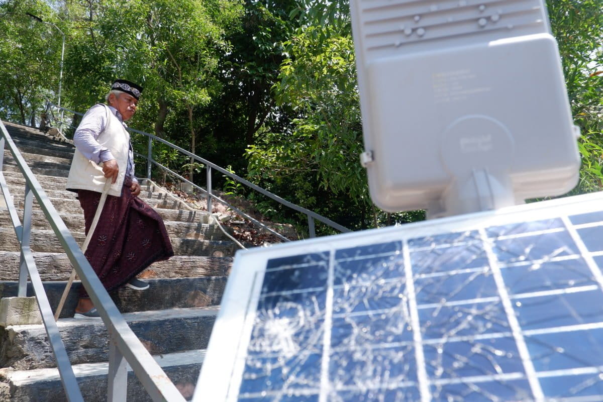Panel surya sangat membantu. Beberapa panel bisa menghidupkan lampu penerangan jalan sampai pagi hari. “Ini juga bisa diatur jamnya, mau berapa jam hidup, enam jam atau 10 jam, misal, memasang juga murah.”