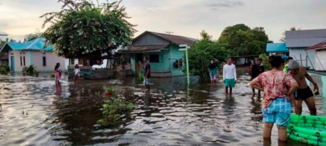 Di Pulau Trangan, Aru Selatan Timur, tepatnya di Desa Gomar Sungai, belasan rumah warga di bibir pantai diterjang banjir rob, seperti pada 6 Desember 2021 ketika sekitar 12 rumah terendam air laut.