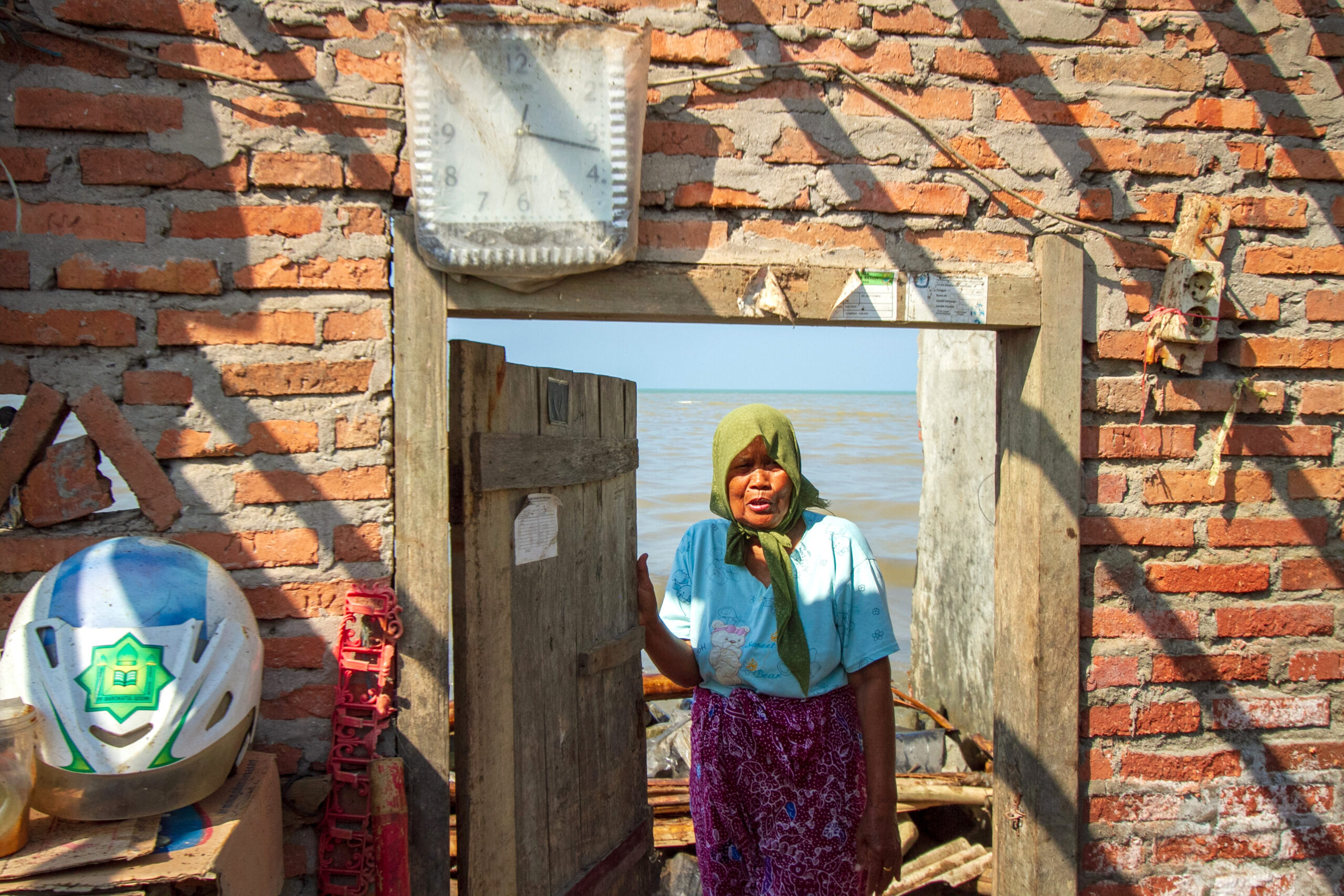 Sejenak ingatannya melompat, mengenang masa sekitar 20-30 tahun lalu. Tatkala sekelompok bocah yang tinggal di pinggir jalur pantura, Jalan Raya Daendels itu bermain sepak bola di pinggir pantai. “Sekarang ya sudah tidak bisa, wong sudah tertutup air laut,” kata lelaki yang sehari-hari bekerja sebagai nelayan itu.