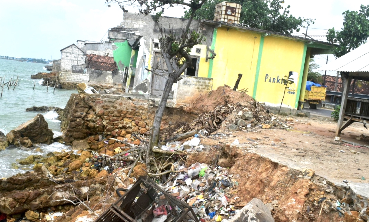 Tidak hanya itu. Gempuran ombak yang diikuti abrasi itu juga juga mulai menghancurkan deretan bangunan yang ada di pinggir pantai. Beberapa di antaranya bahkan sudah terlihat kosong tanpa penghuni. Lengkap dengan tulisan ‘dijual’ pada yang ditempel di dinding bangunan. “Tapi siapa yang mau beli, wong belakangnya juga dihajar ombak terus,” katanya.