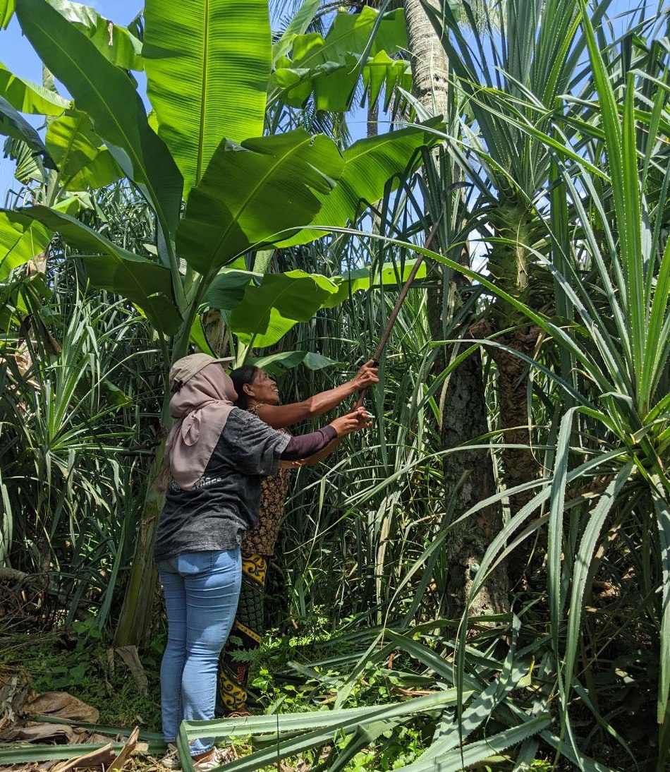 Kebun-kebun warga kebanyakan berisi kelapa dan pisang, pohonnya tinggi. Jika ditanami pandan berduri di dalamnya, sulit tumbuh subur karena tak banyak dapat sinar matahari.