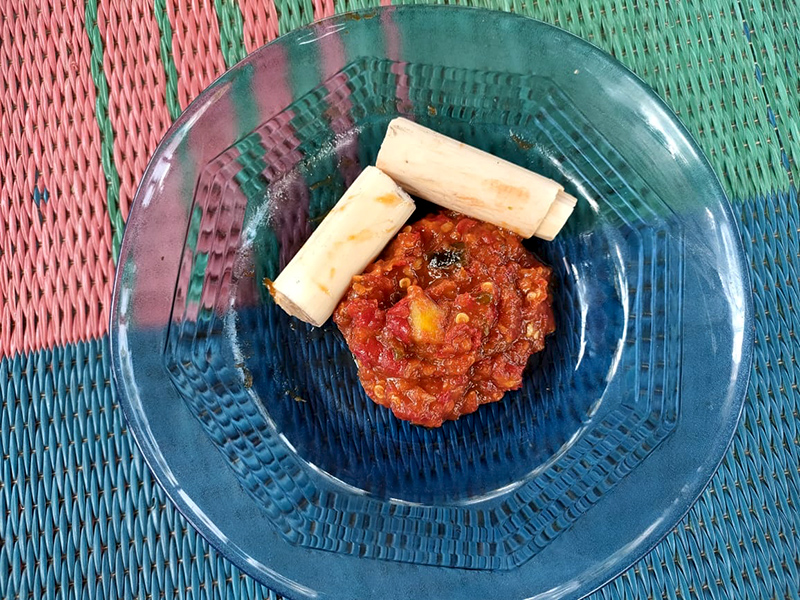 Menurut Adi, sambal bacang ibarat “booster” yang mampu meningkatkan gairah makan. Membuatnya juga tidak sulit, bacang matang disatukan dengan bahan sambal lalu digiling hingga halus.