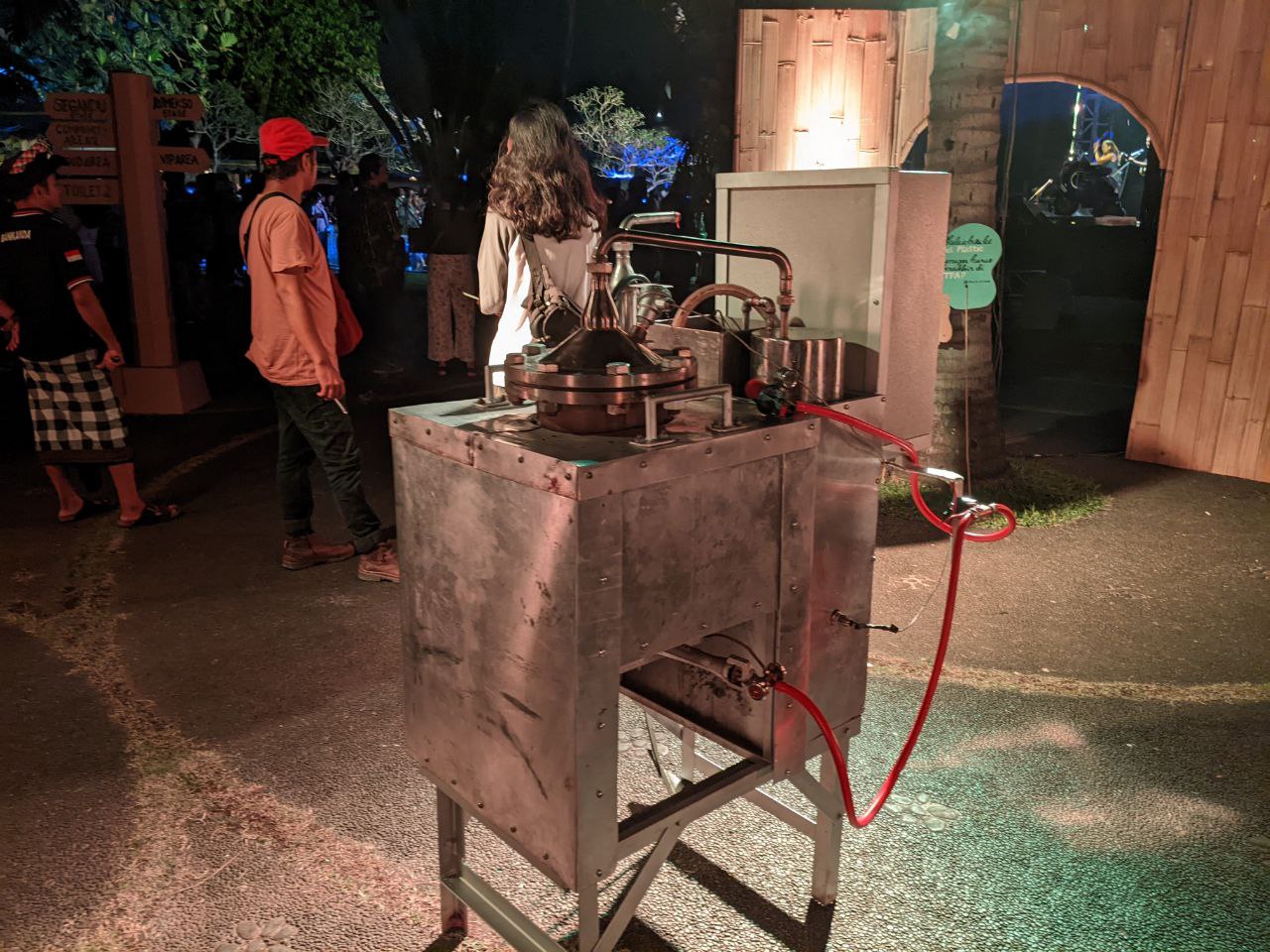 Raungan sound system terdengar ketika memasuki arena konser di Musem Njana Tilem, Gianyar, Bali, 16 Oktober 2022. Setidaknya ada 12 musisi dan grup band yang tampil. Panitia menyebut bahan bakar mesin genset untuk mendukung kebutuhan listrik mereka dibangkitkan dari solar olahan sampah plastik melalui mesin pirolisis. Ini adalah proses dekomposisi pada suhu tinggi tanpa oksigen.