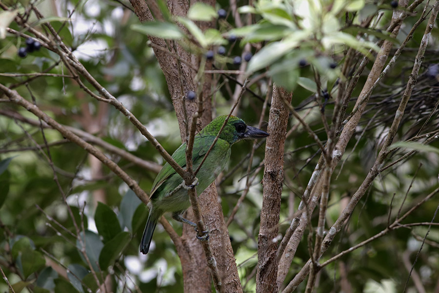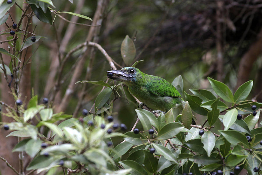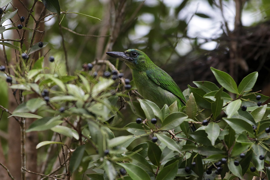 - Burung ini umumnya ditemukan di hutan dataran rendah, di bawah ketinggian 800 meter dari permukaan laut. Jarang dilihat di hutan rawa dan gambut.